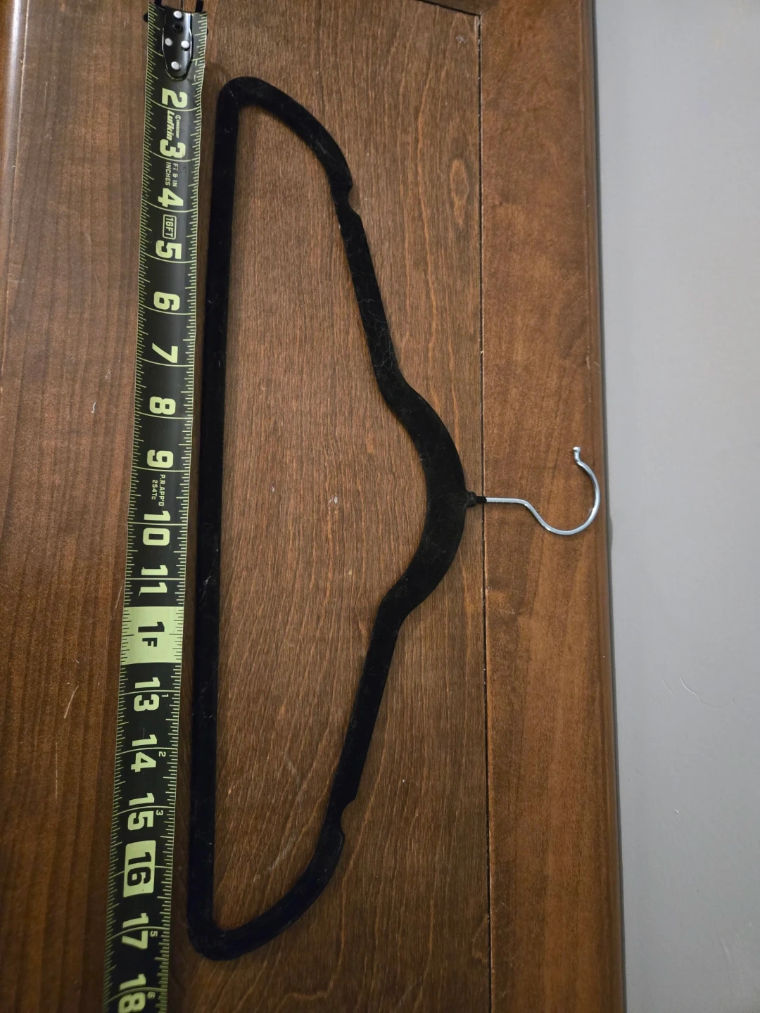 Selling a black velvet clothes hanger, perfect for keeping your clothes wrinkle-free. 3 different sizes, pictures show the dimensions.