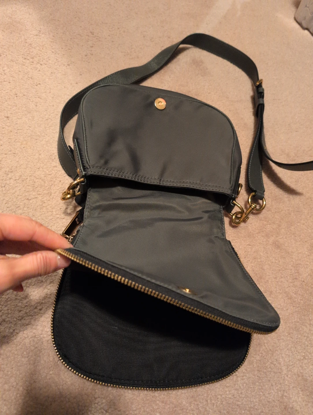 This is a Marc Jacobs grey nylon crossbody bag. It's in great condition and ready for a new owner! Perfect for everyday use or travel, it's lightweight and easy to carry.