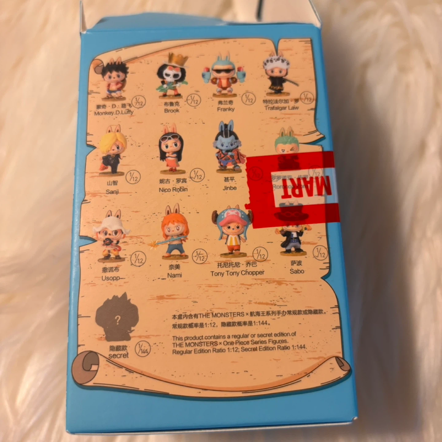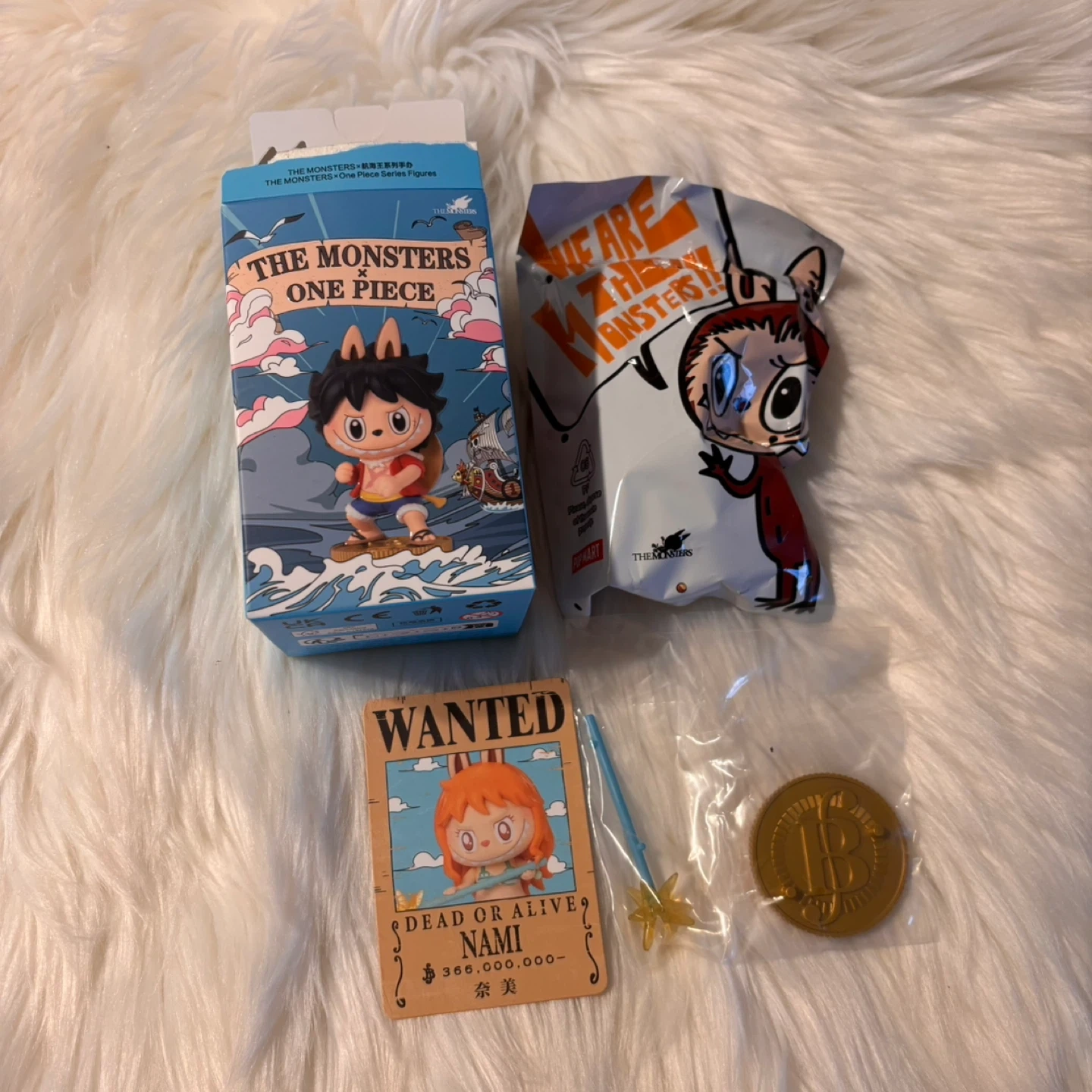 The Monsters One Piece Nami figure is up for grabs! It comes with a wanted poster, a small sword, and a gold coin. The box shows the other possible characters in the series.