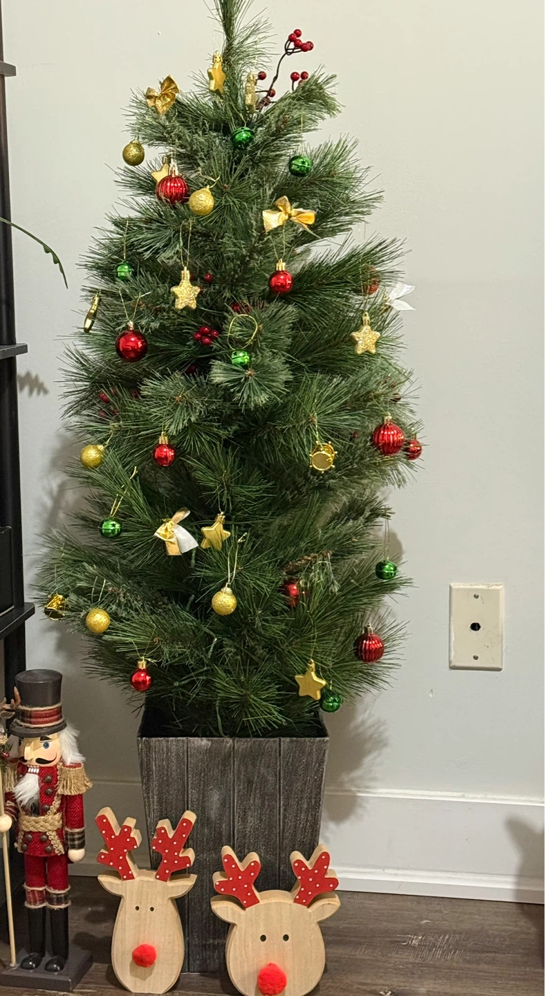 Giving away a festive Christmas tree, all decorated and ready to go! It comes with a variety of colourful ornaments, including baubles, stars, and bows. Perfect for adding some holiday cheer to your home