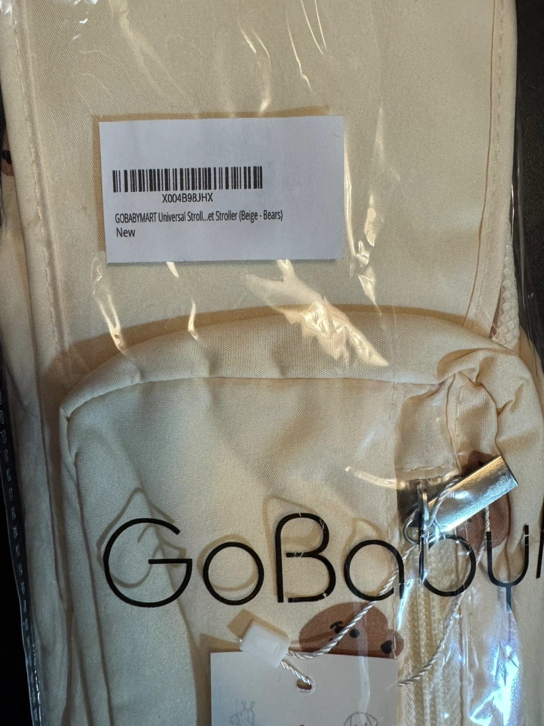 I'm selling a brand new GoBabyMart Universal Stroller Organizer in a cute beige bears design! It's still in its original packaging and ready to keep all your essentials organized while you're out and about with your little one