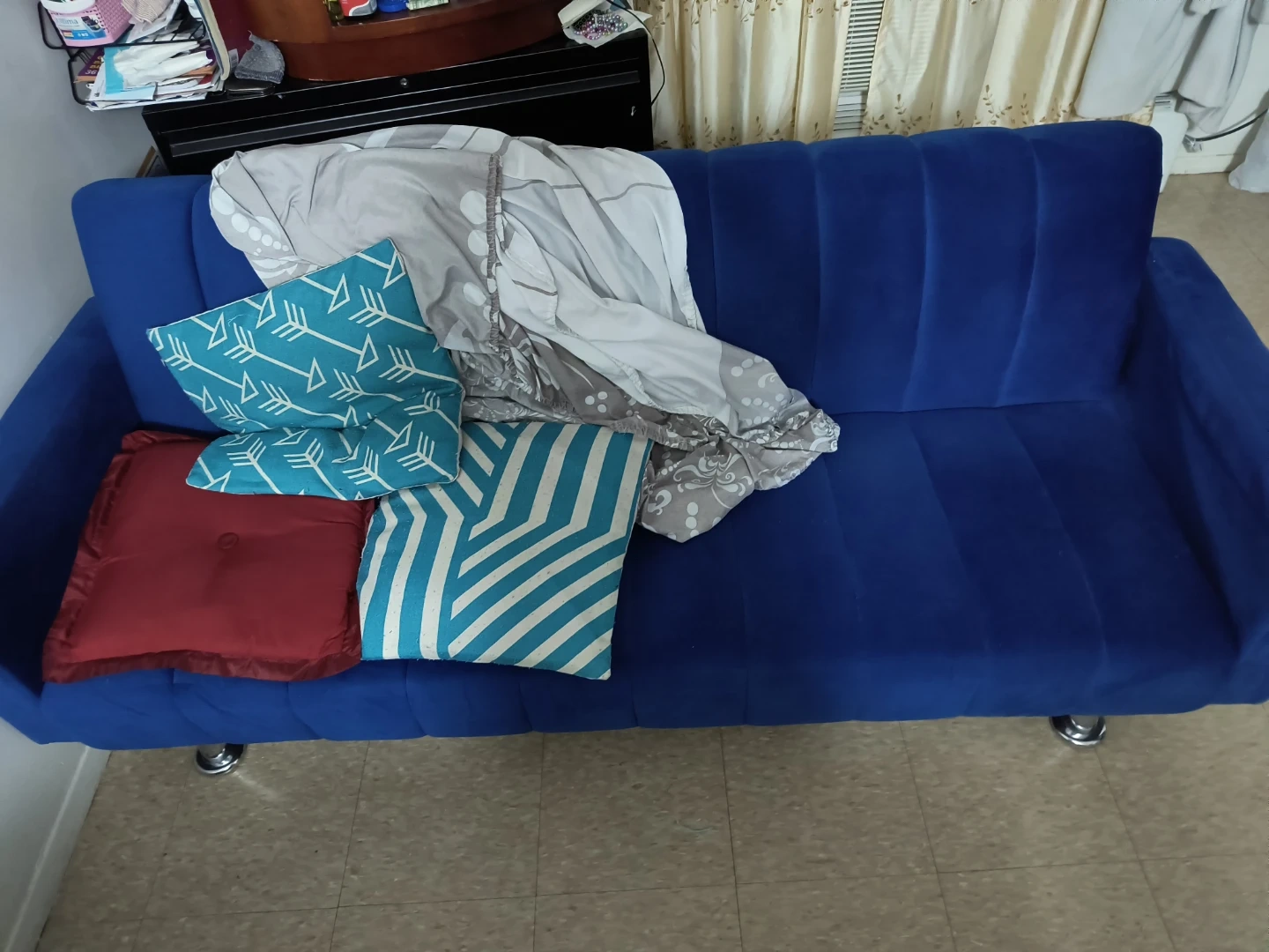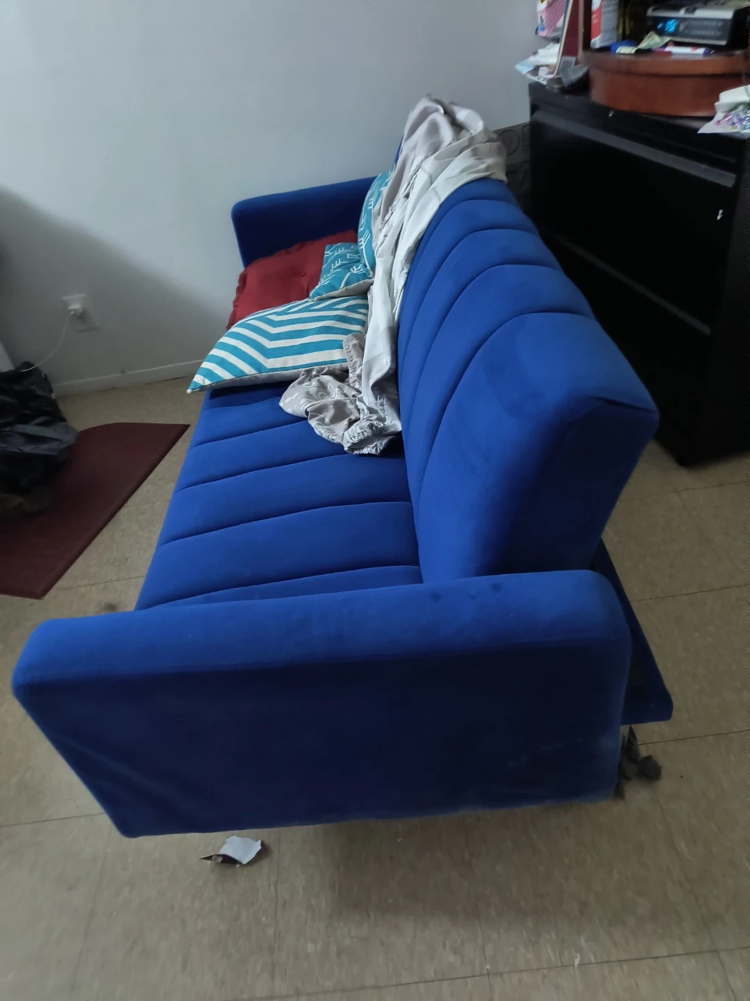 Selling a blue futon sofa bed in great condition! It's a stylish and functional piece, perfect for adding extra seating and sleeping space to your home. The futon easily converts into a bed, making it ideal for guests or small living spaces. The blue color adds a pop of color to any room!