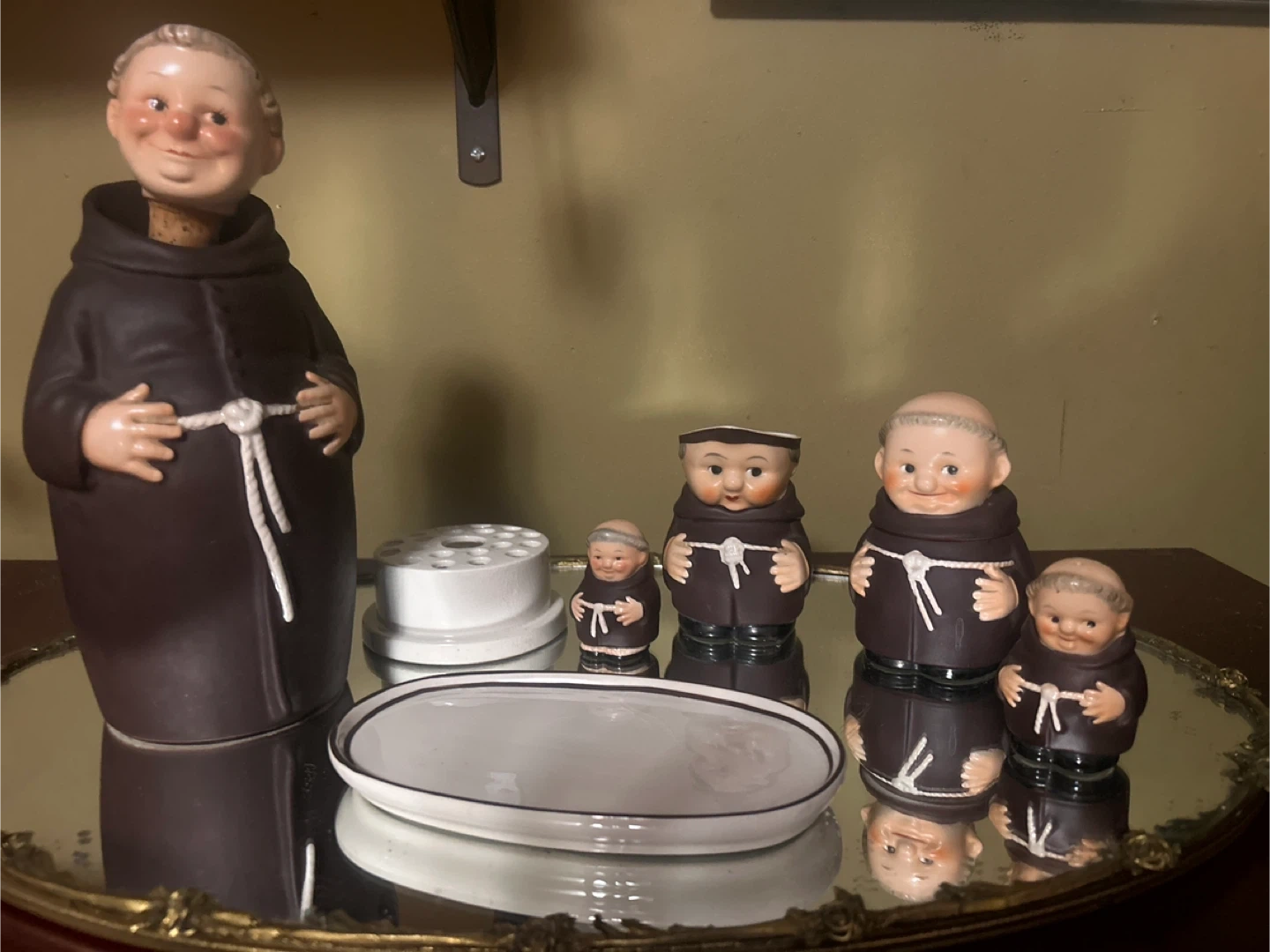Selling a charming vintage Goebel monk figurine set! These figurines are in good condition and would make a delightful addition to any collection. The set includes various sized monks, each with unique expressions and details. The base of the figurines are marked with "W. Germany" and "Goebel".