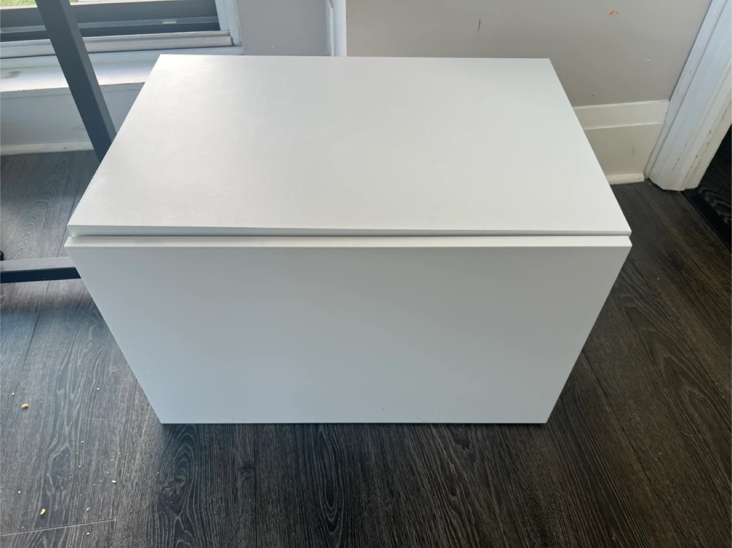 Looking to sell a white IKEA Kallax shelf unit! It's in great shape and ready to organize your space. Perfect for books, decor, or storage bins. Easy to customize with inserts too!