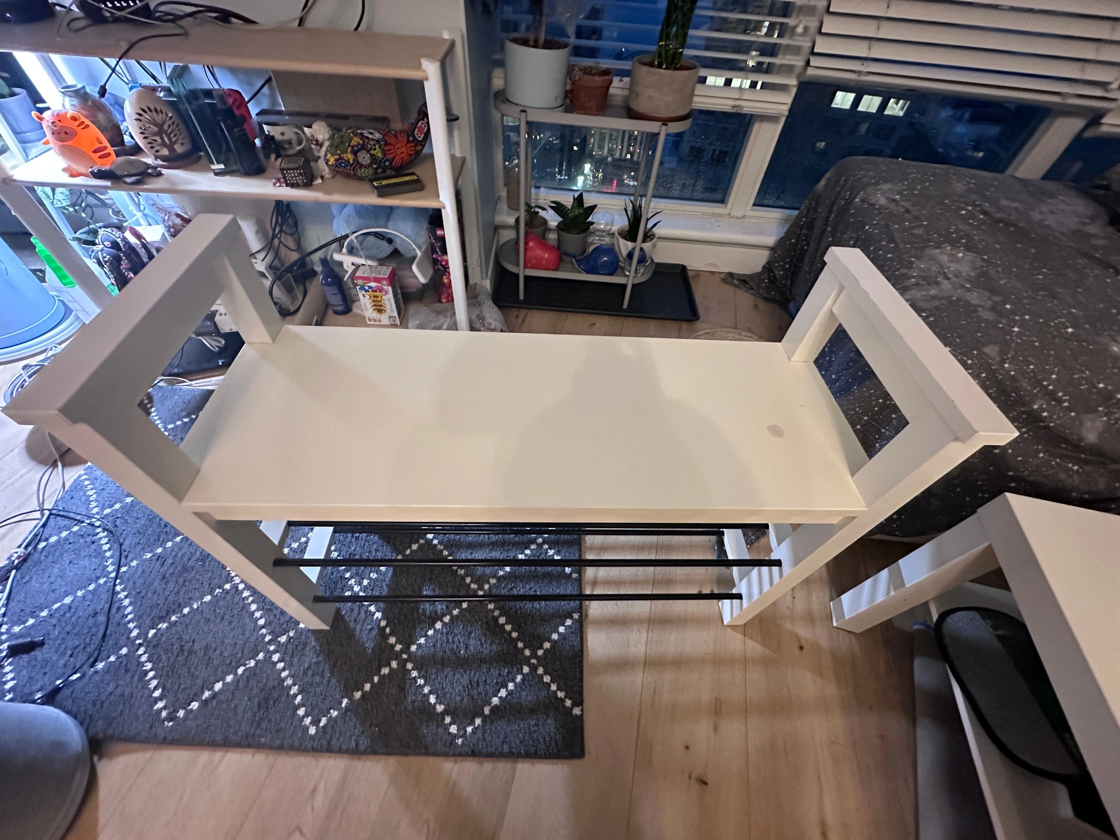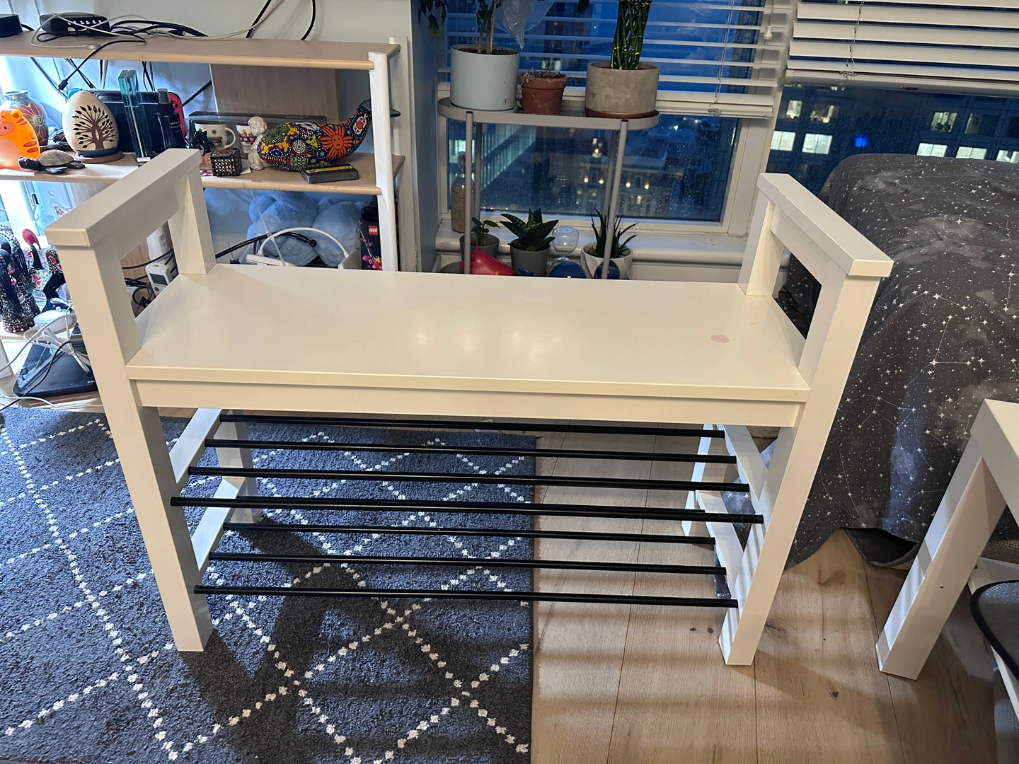 Features: It provides a convenient place to sit while putting on or taking off shoes and includes an extra shelf for storage.