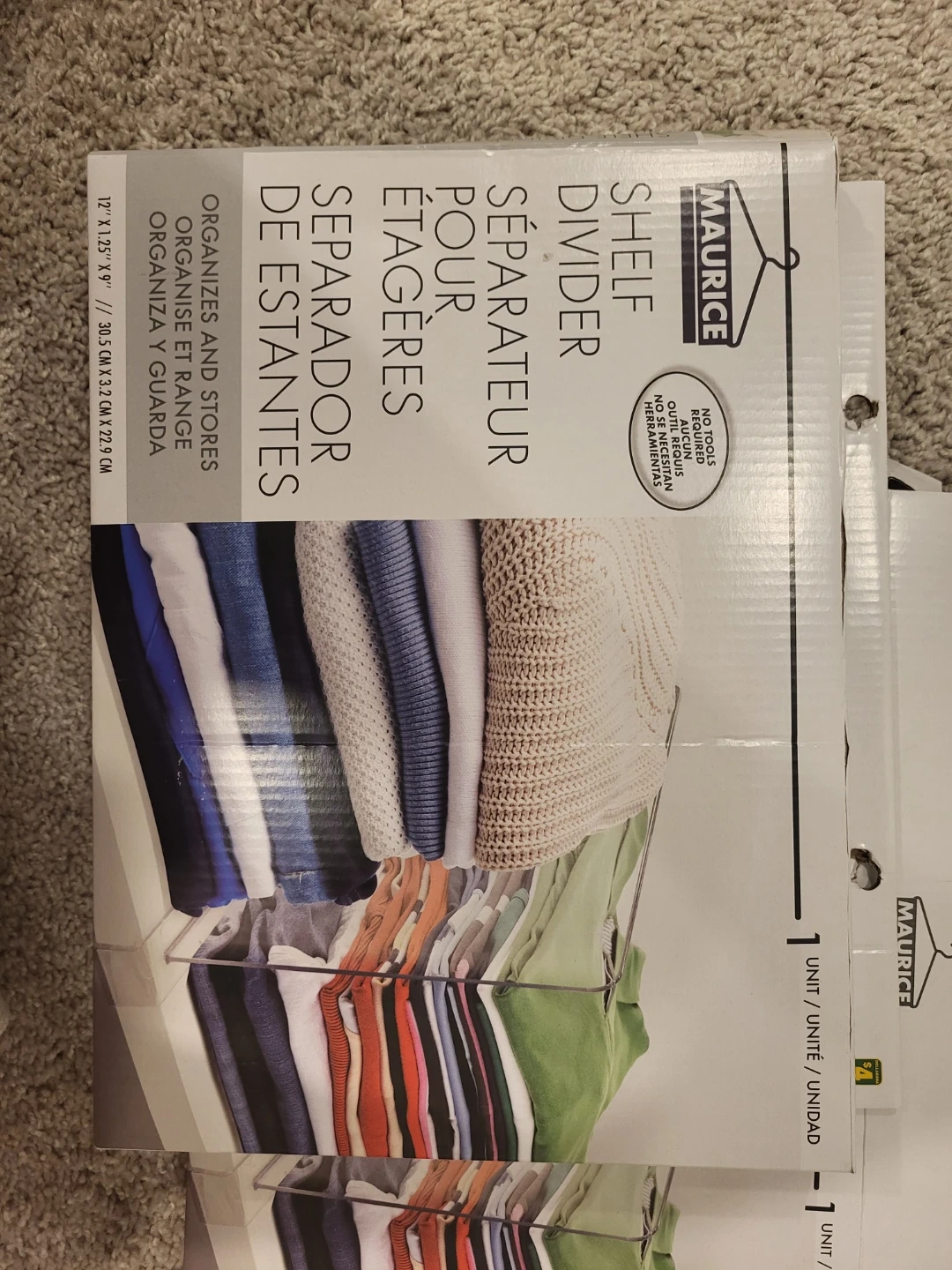 I bought these 2 shelf dividers, but they didn't fit my closet shelf. They are still new in the box! I'm selling both for $6.