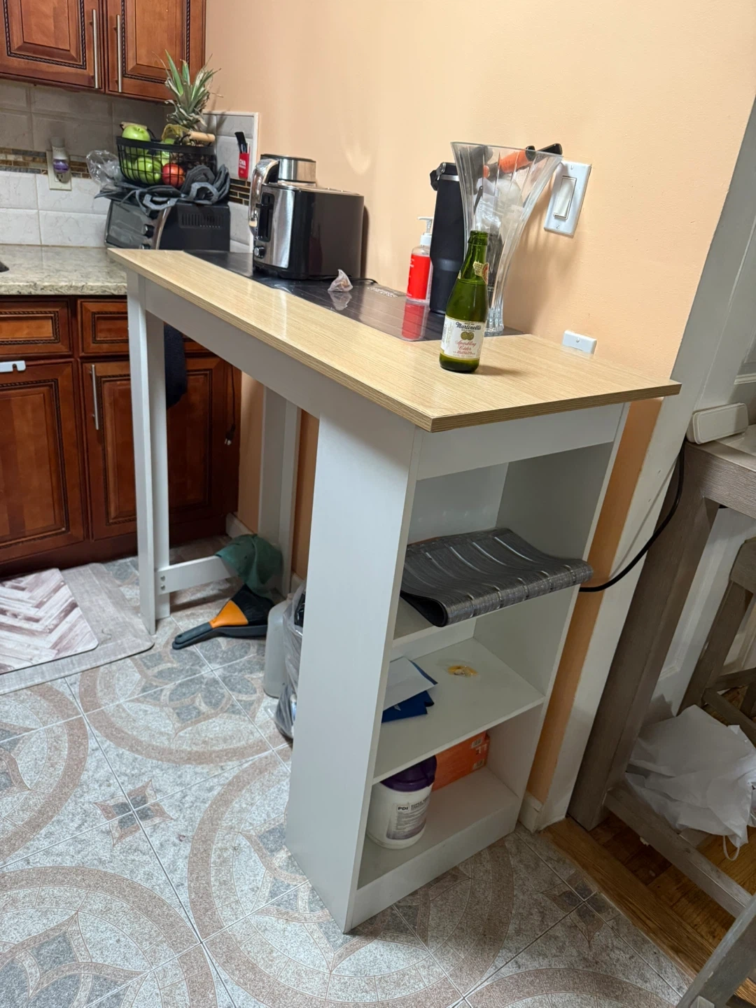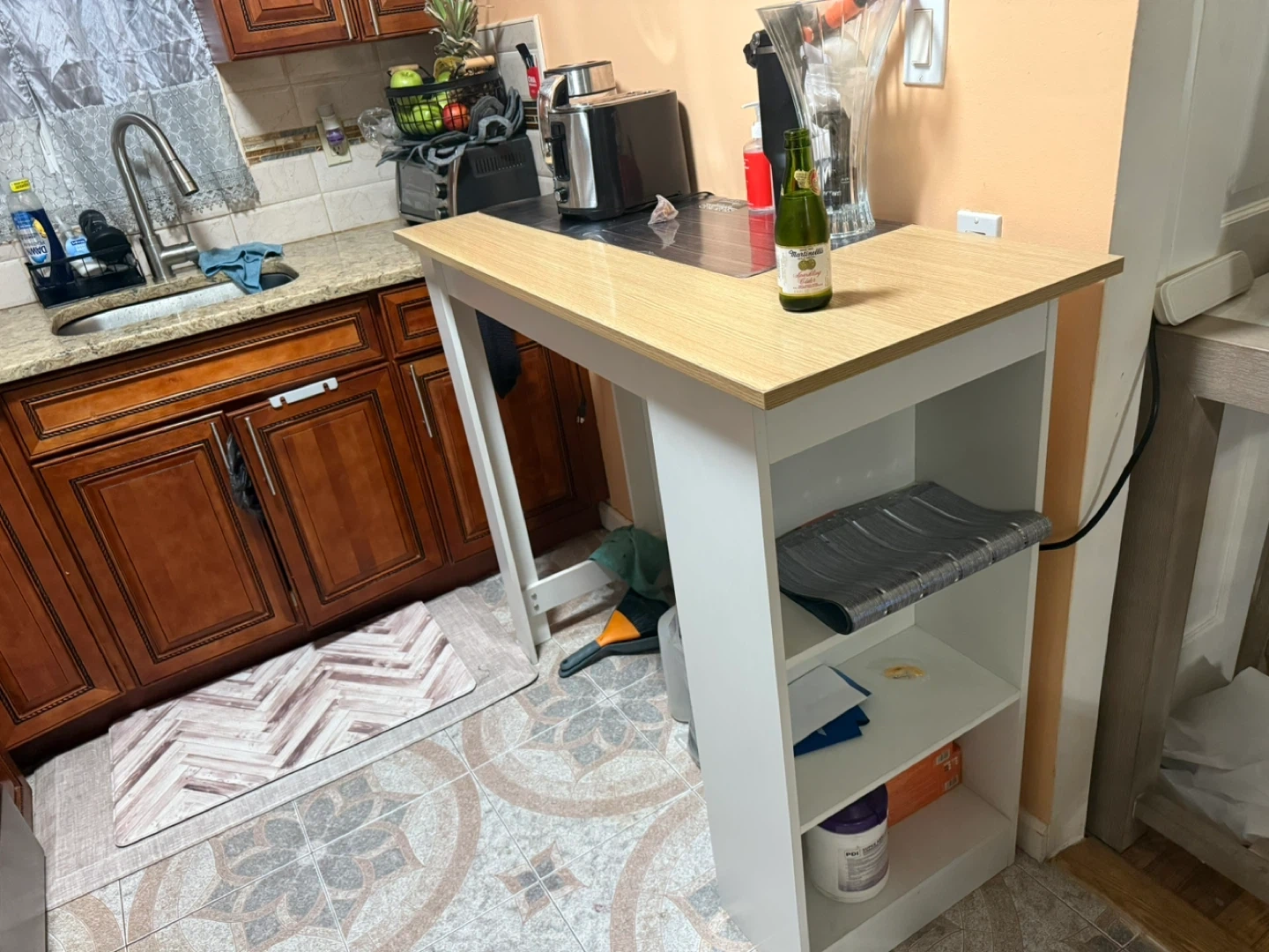 Selling a kitchen island with built-in storage shelves! It's perfect for adding extra counter space and organization to your kitchen. Great for small spaces or anyone needing a bit more room to prep meals