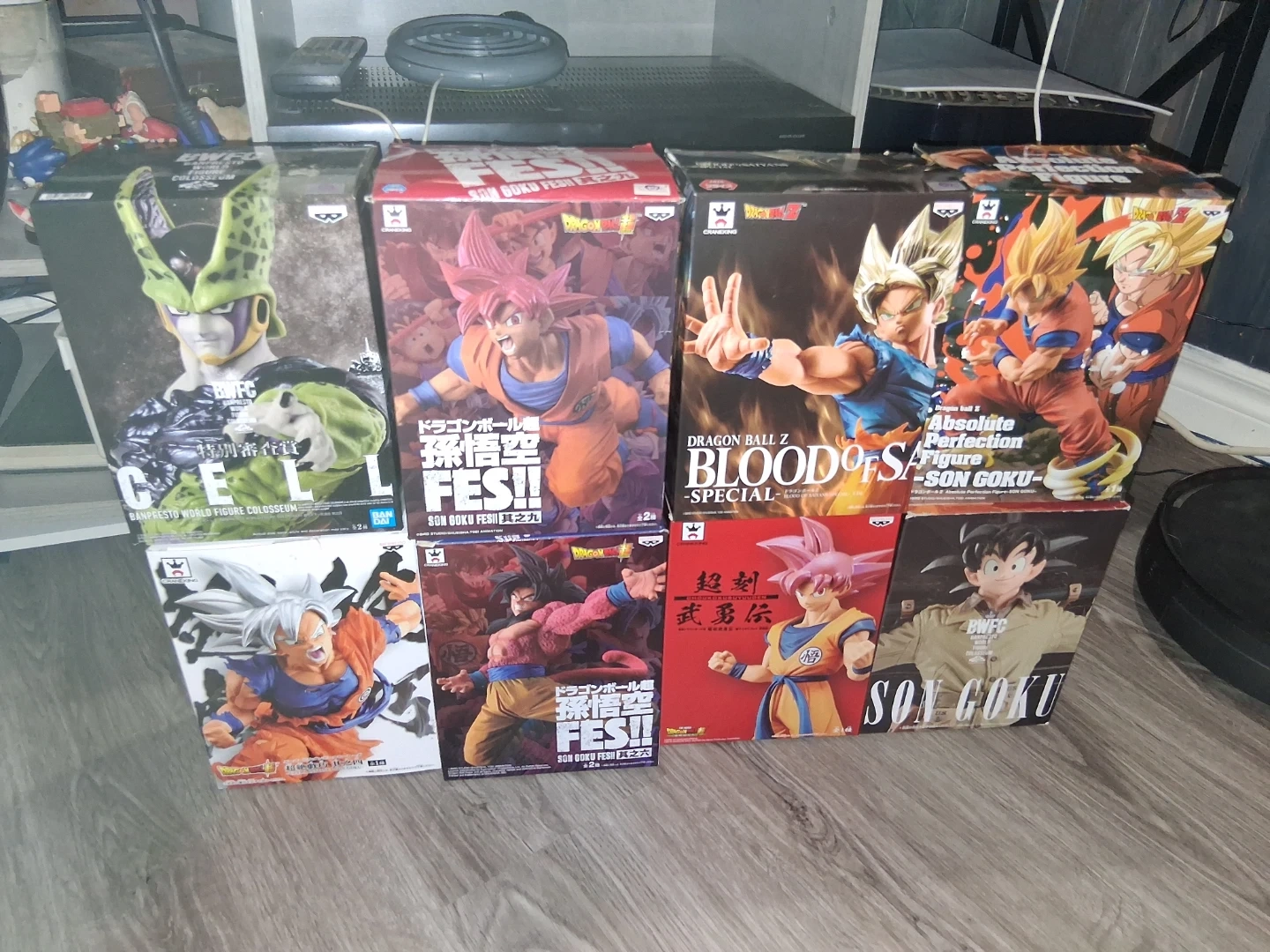 Selling a collection of Dragon Ball Z and One Piece figures. All figures come with their original boxes and are in great condition. Perfect for any anime collector!