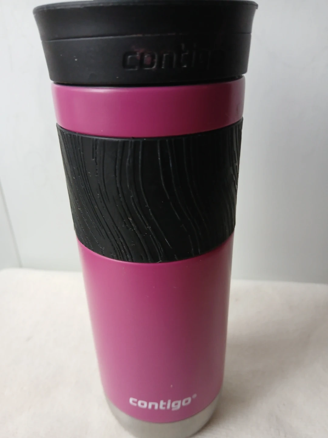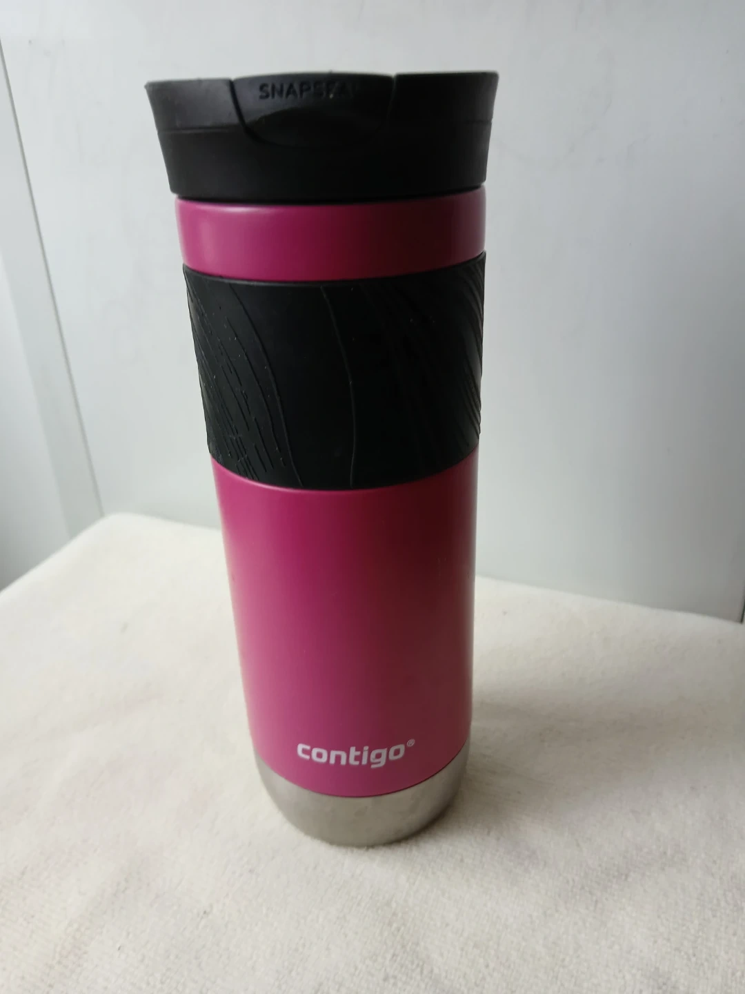 Selling a Contigo travel mug in pink! It's in great shape and ready for your daily coffee or tea. The mug features a black SnapSeal lid and a comfortable black grip. Perfect for keeping your drinks hot or cold on the go.