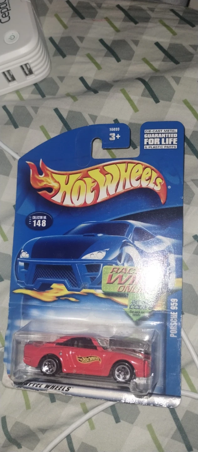 Selling a Hot Wheels Porsche 959, still in its original packaging! It's a die-cast metal car, guaranteed for life with plastic parts. Perfect for collectors aged 3+ and up. Collector number 148