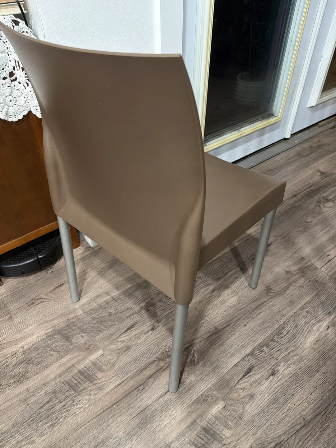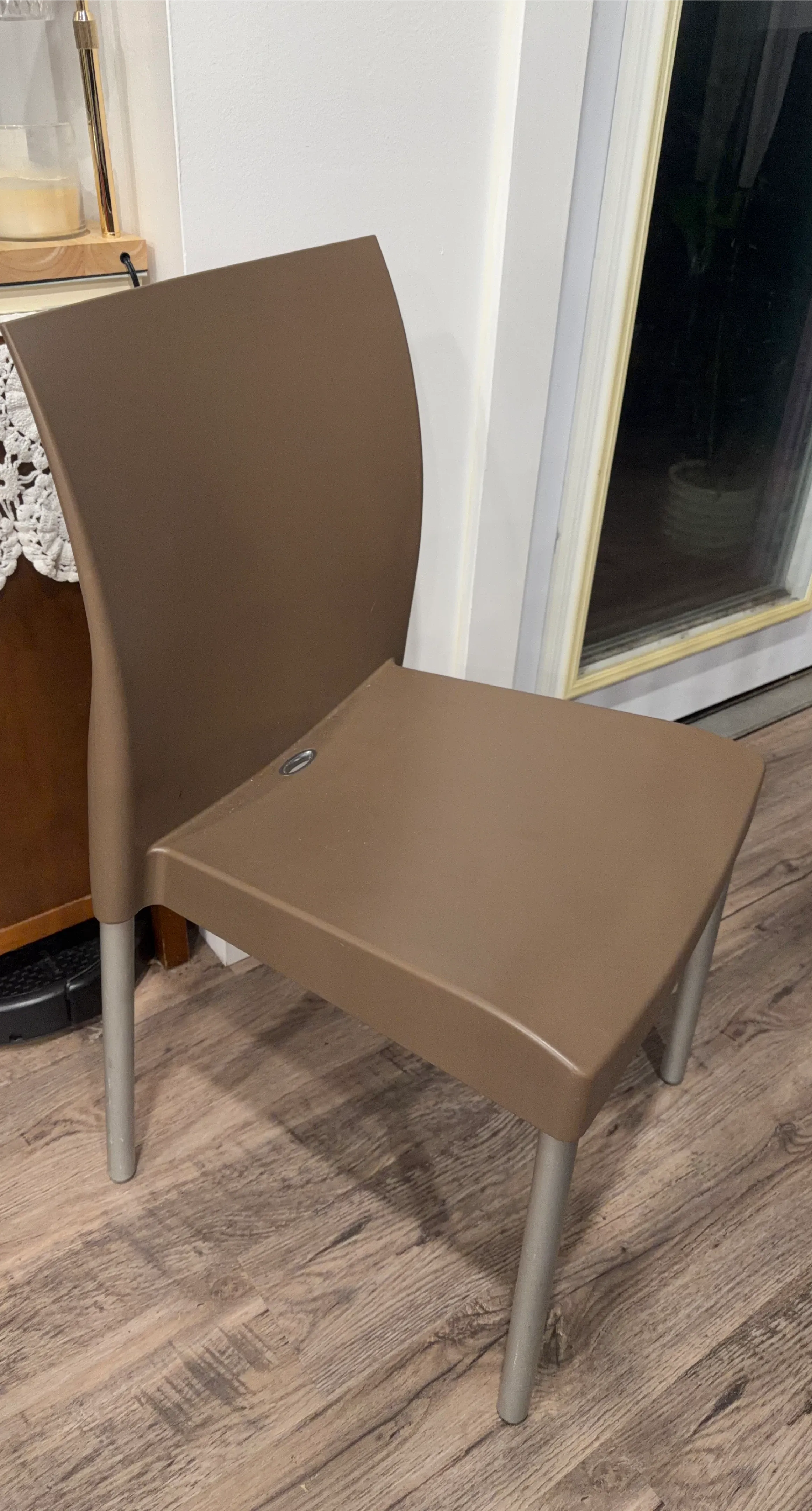 2 available $50 each or both for $90. sturdy brown plastic chair with metal legs. It's perfect for adding extra seating to your dining area or any room in your home. It's in barely used great condition and ready for a new home