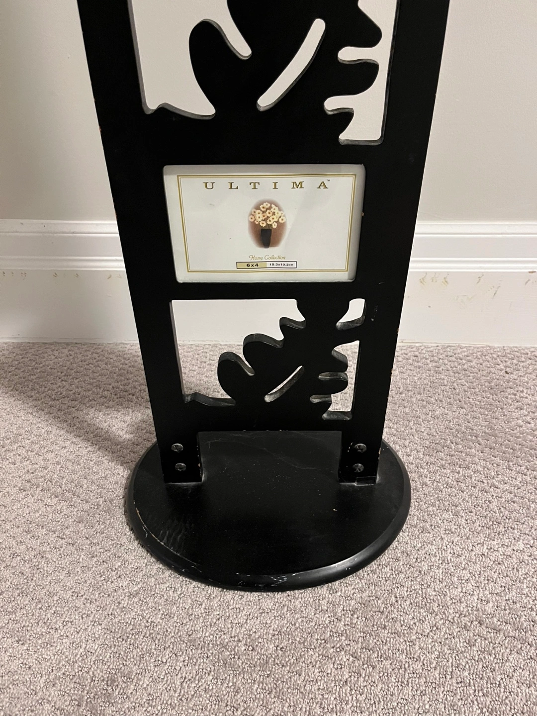 Selling a unique leaf motif picture frame stand! It's black and holds multiple 6x4 inch photos. Great for displaying your favourite memories in a stylish way
