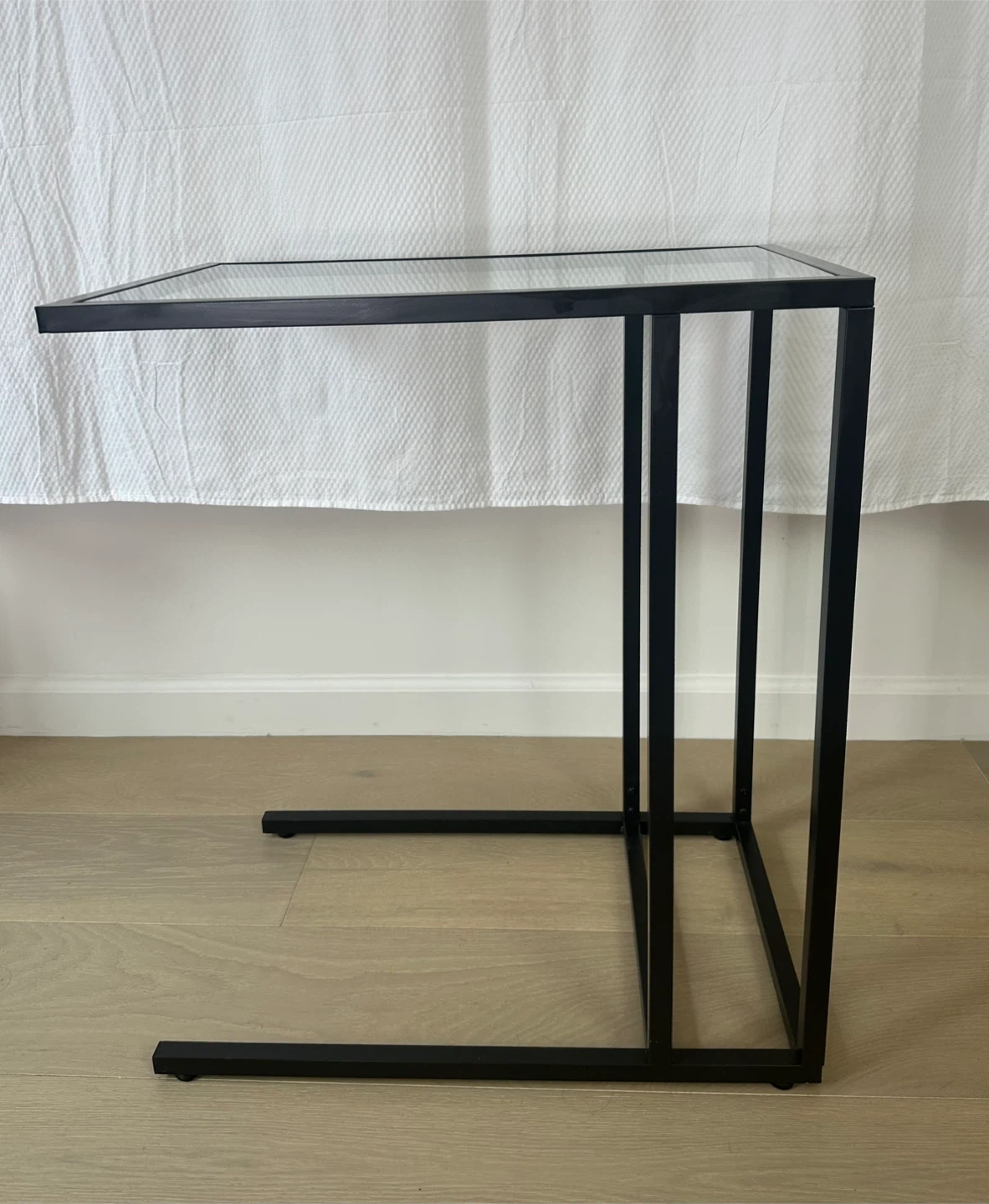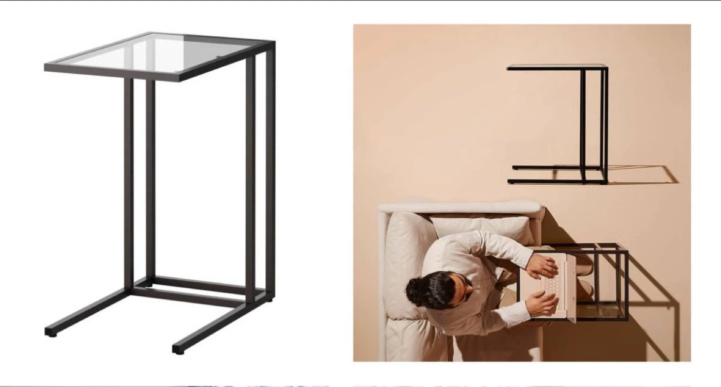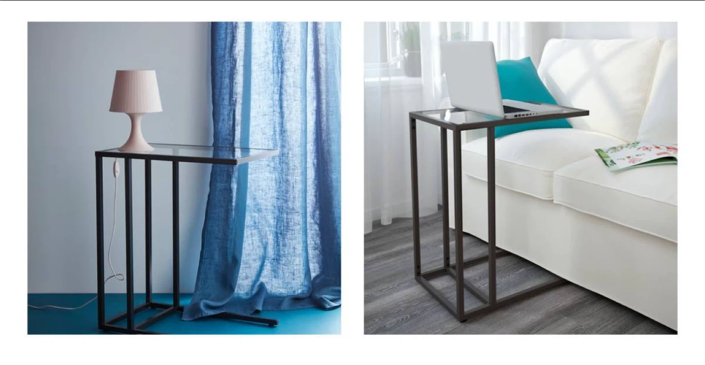 Sleek and functional, the VITTSJÖ laptop stand combines a black-brown steel frame with a tempered glass top, giving it a modern, airy look. Perfect beside a sofa, armchair, or bed for work, reading, or decor display.