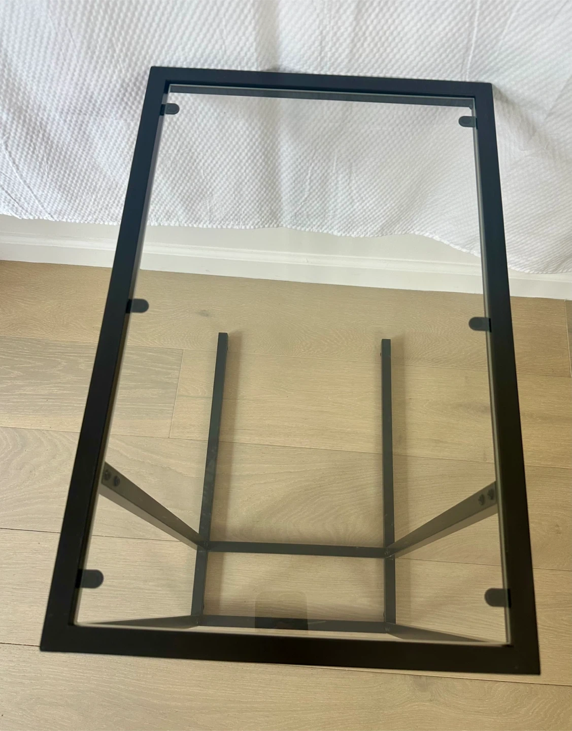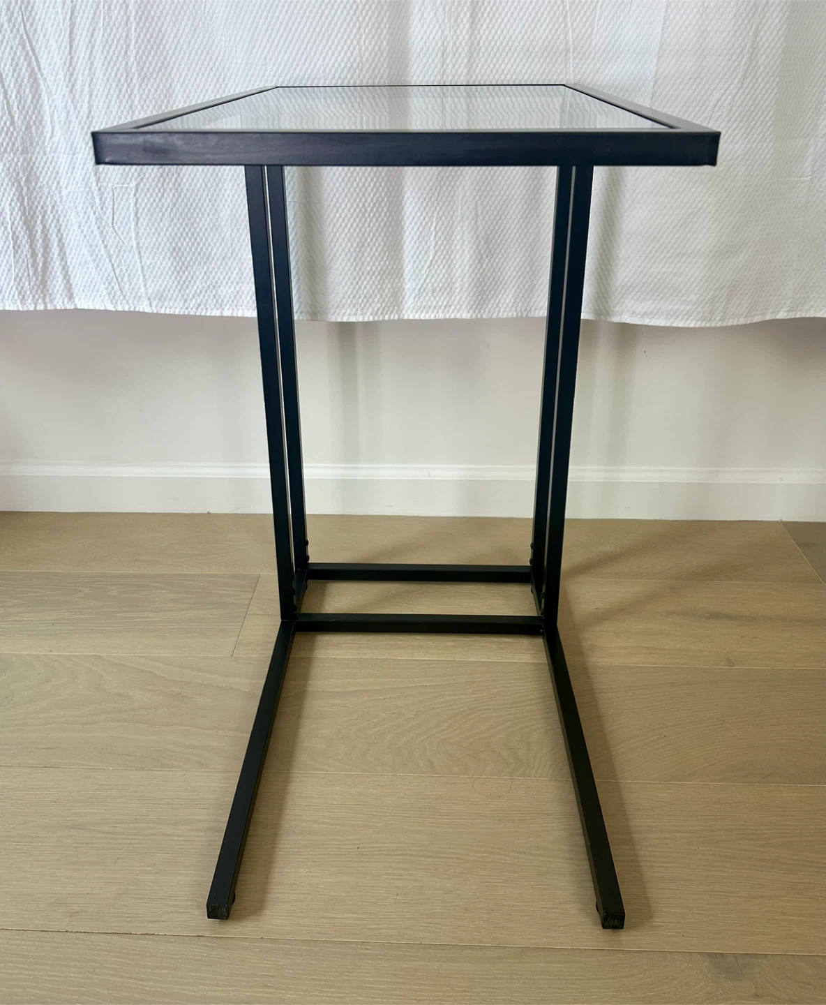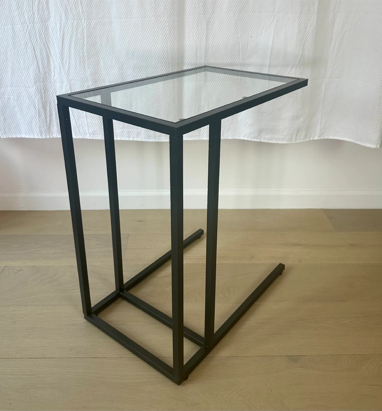 Sleek and functional, the VITTSJÖ laptop stand combines a black-brown steel frame with a tempered glass top, giving it a modern, airy look. Perfect beside a sofa, armchair, or bed for work, reading, or decor display.