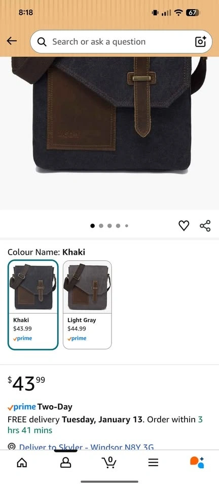 Vaschy Vintage style shoulder Messenger bag (canvas)