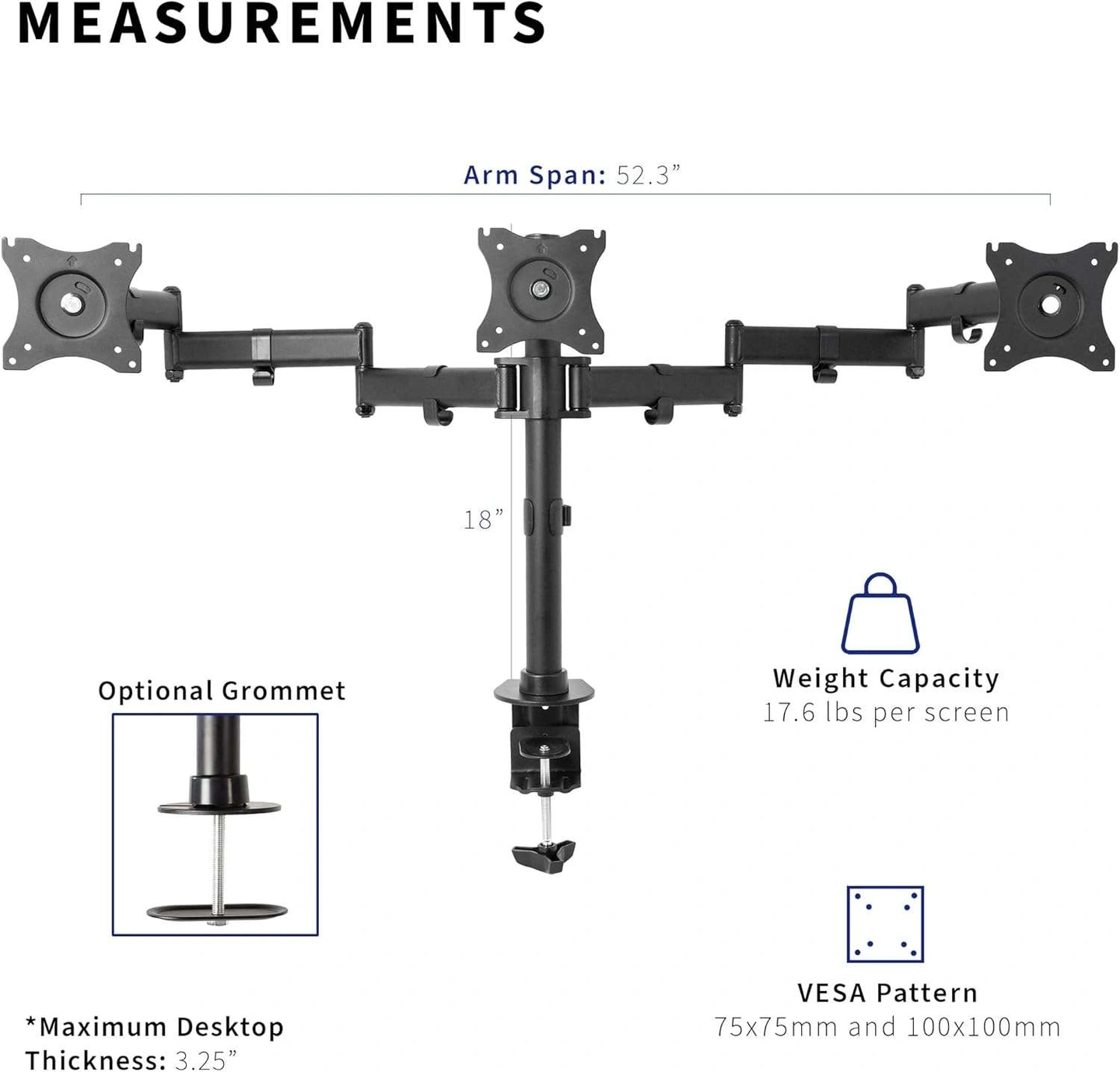 New VIVO Triple Monitor Adjustable Mount, Articulating Stand