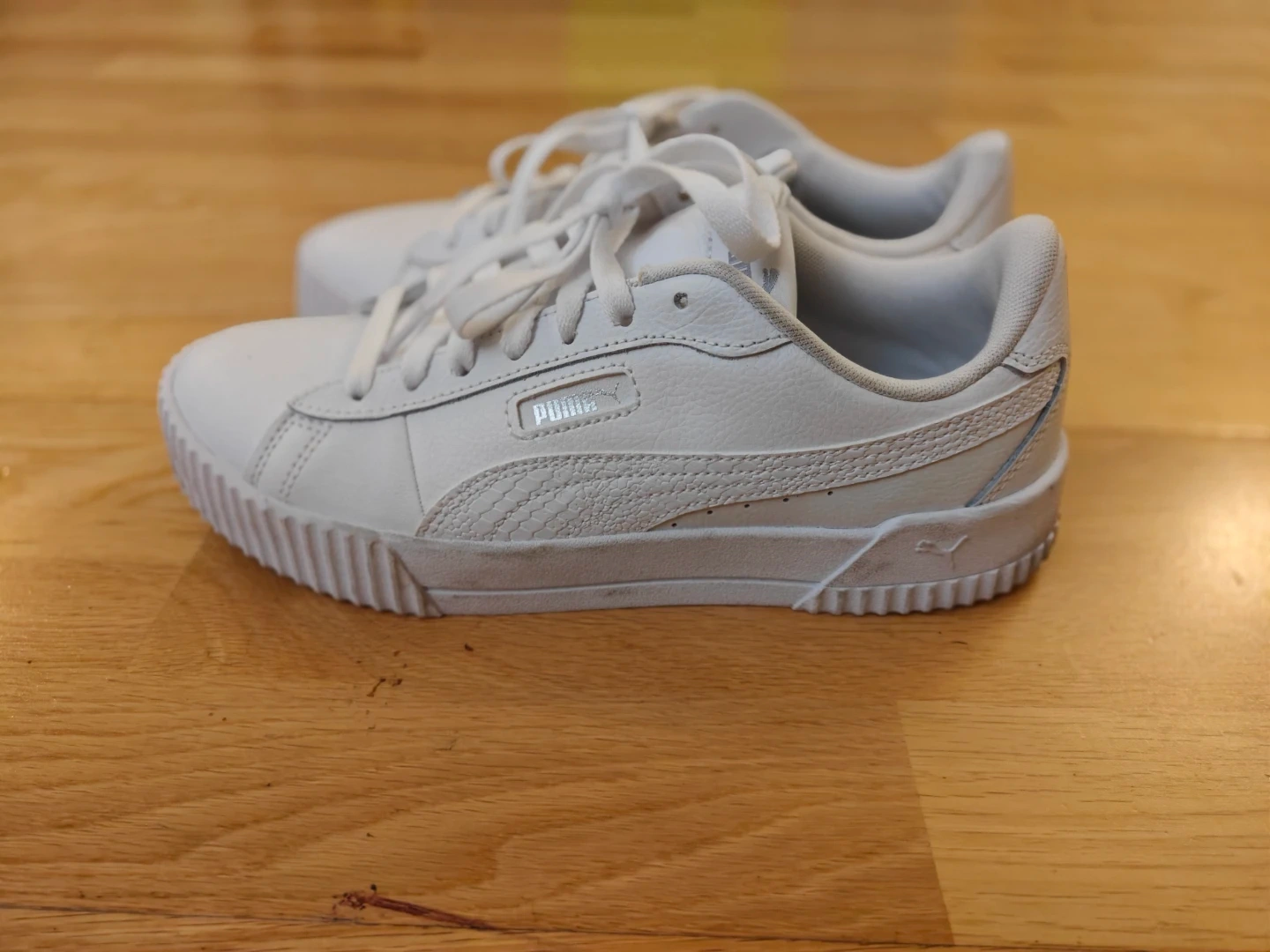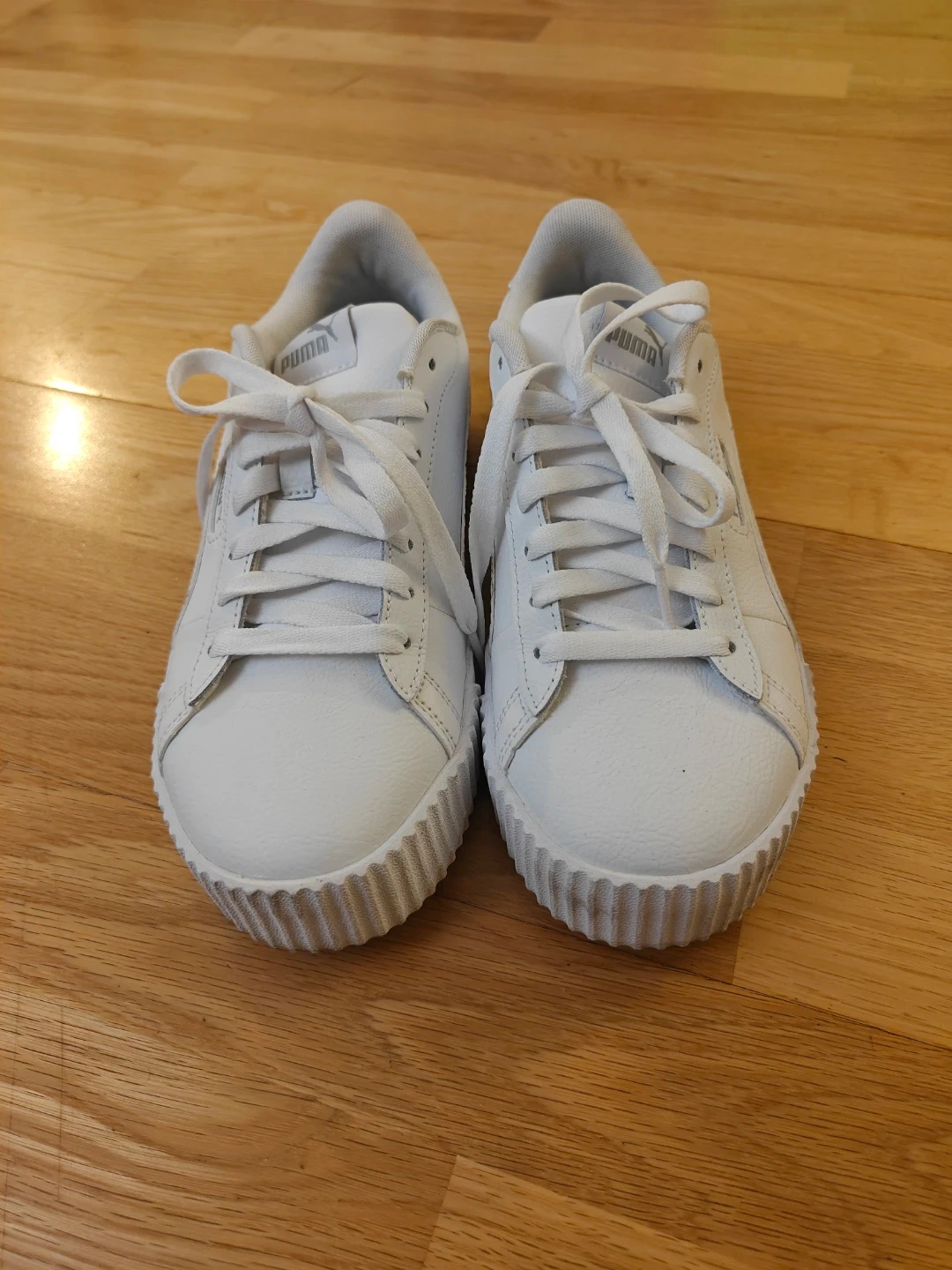 Selling a pair of Puma Carina sneakers in white, size 9. They are in great condition and ready for a new owner!