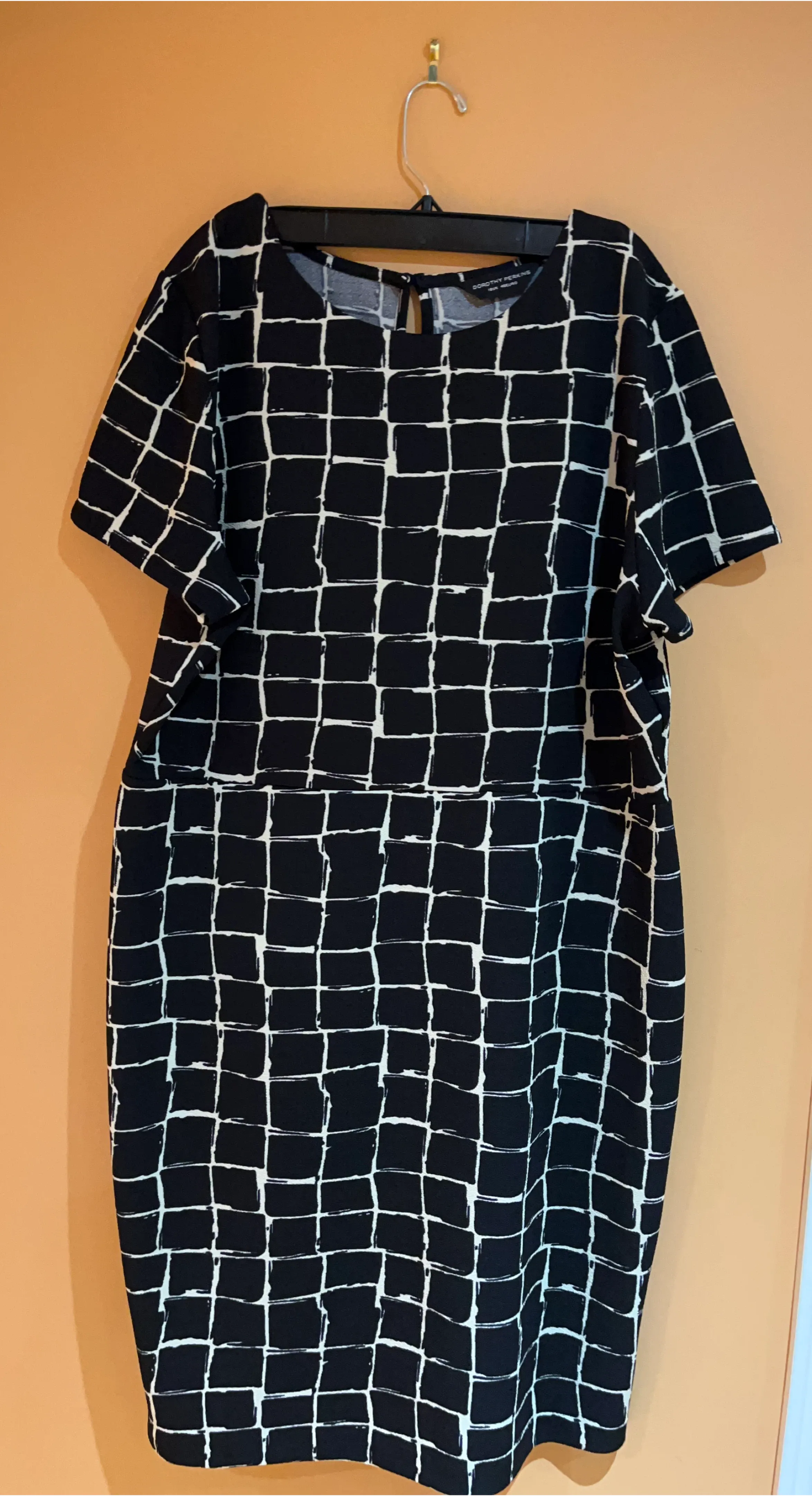 This Dorothy Perkins dress features a stylish black and white grid pattern. It's perfect for a variety of occasions and is in great condition. A lovely addition to any wardrobe!