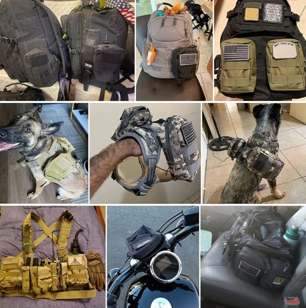 Camping, hiking, EDC, tactical backpacks, vests, biking, travel, work gear, or even service-dog vests.