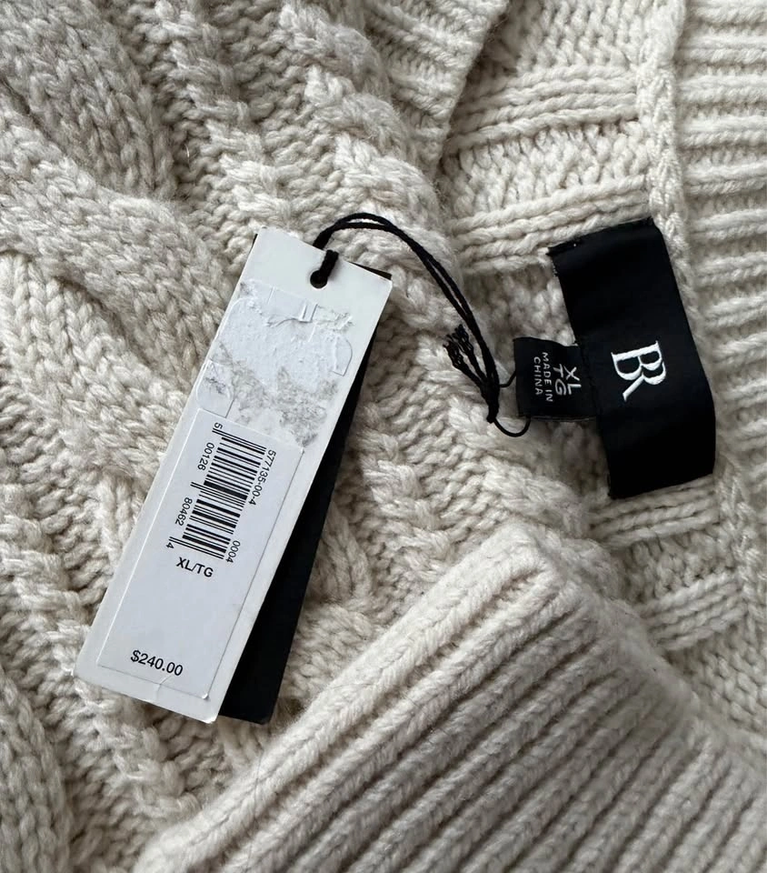 Mens Italian Merino Cable-Knit Sweater (Size XL)