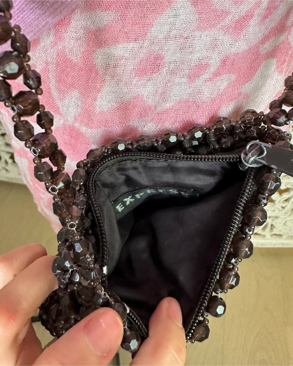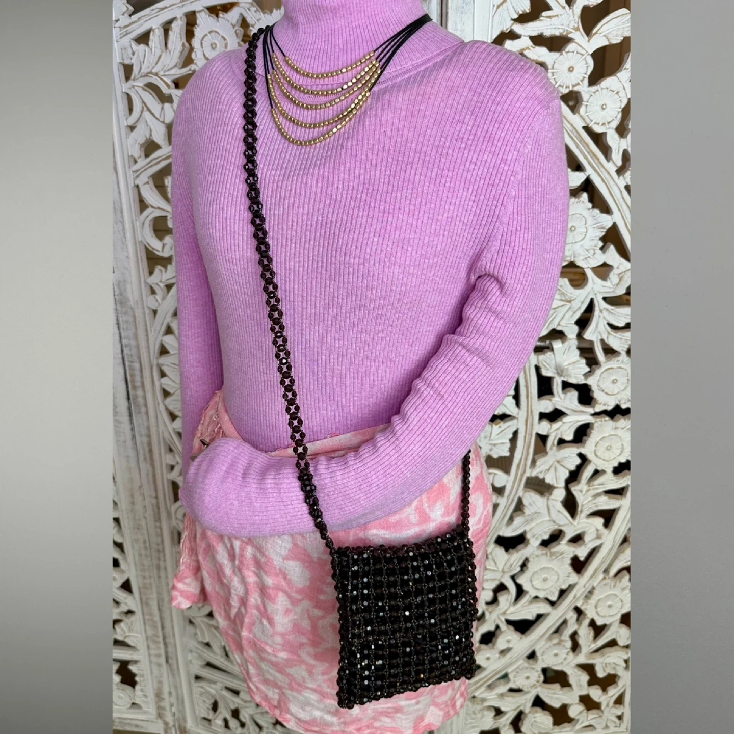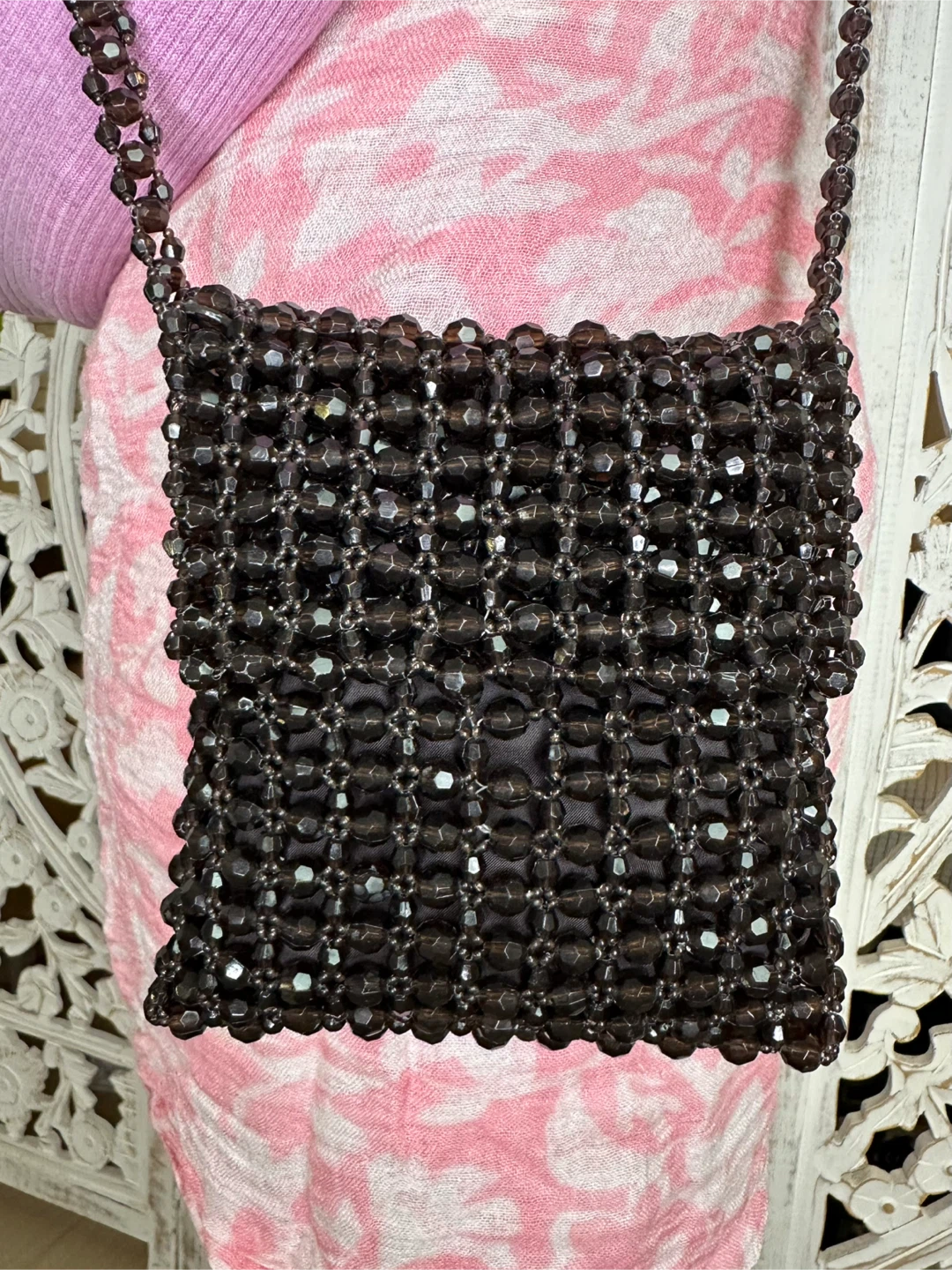 EXPRESS Brown Acrylic Beaded Small Crossbody / Shoulder Bag – Boho Chic Vintage Style