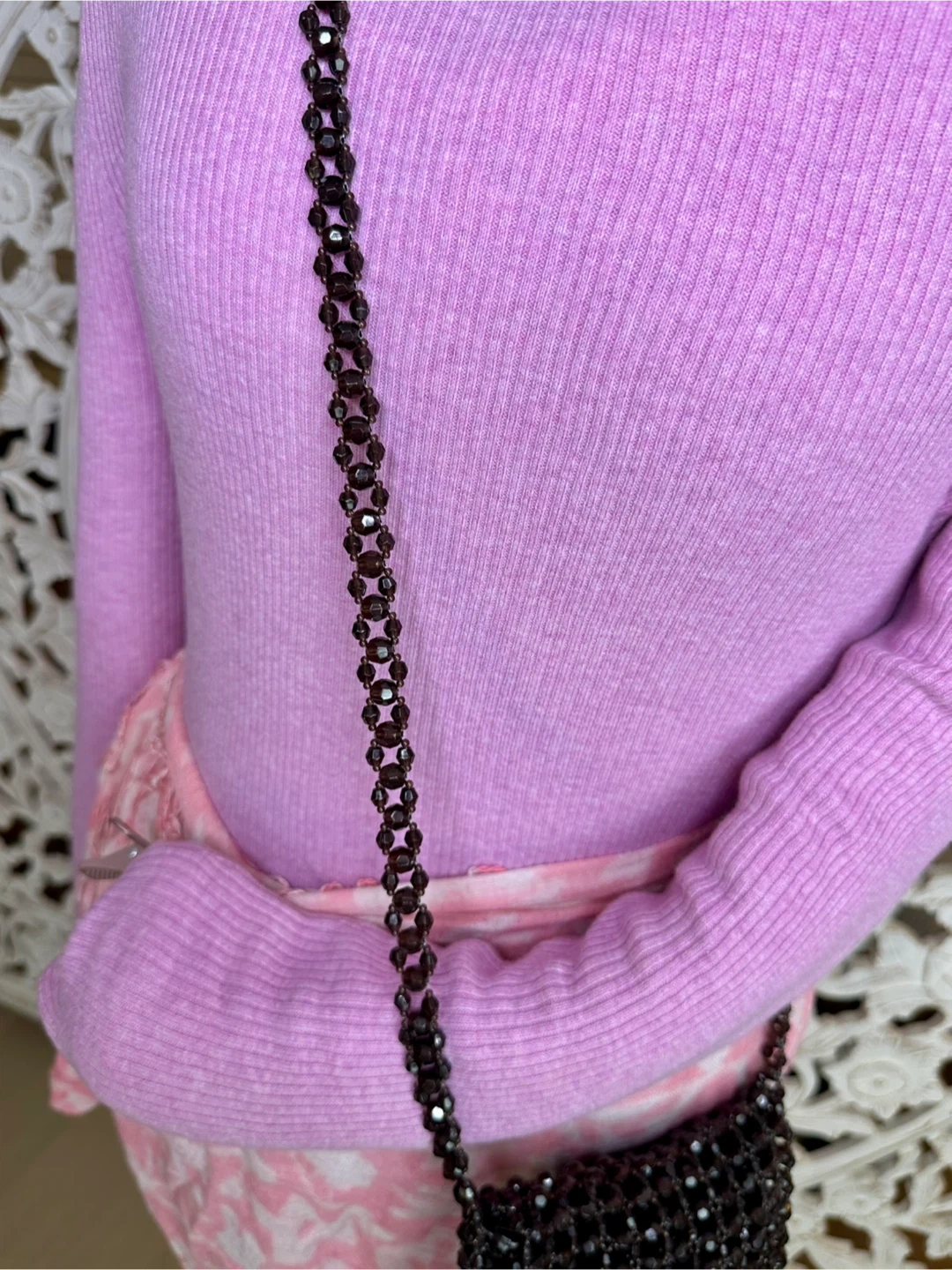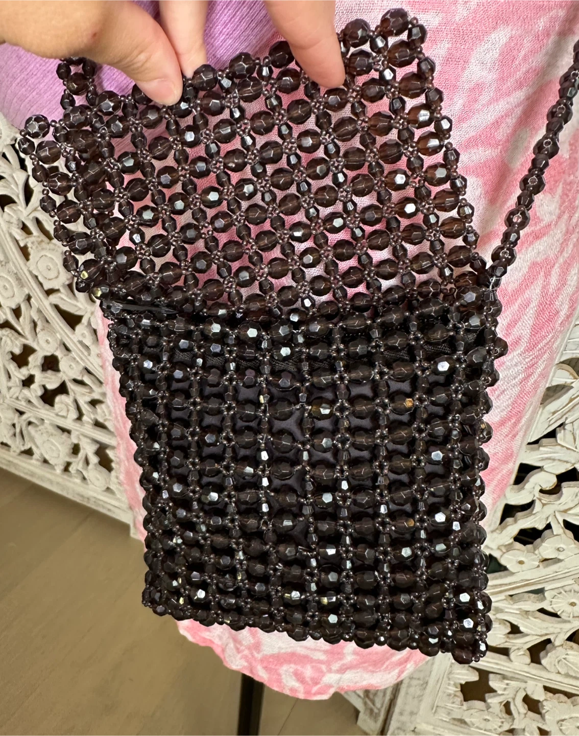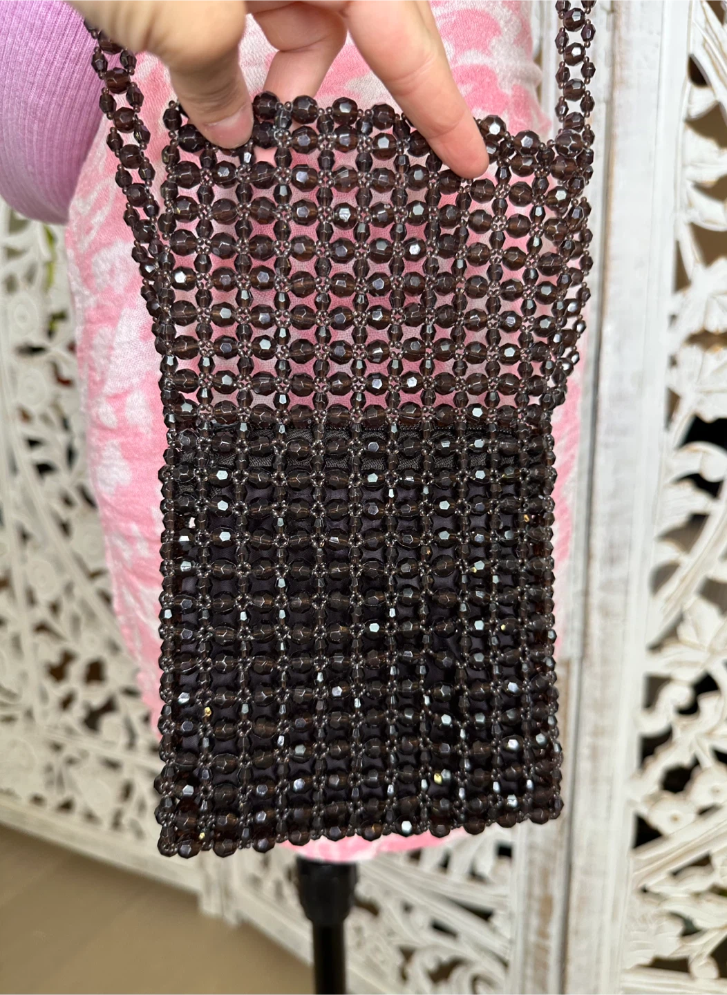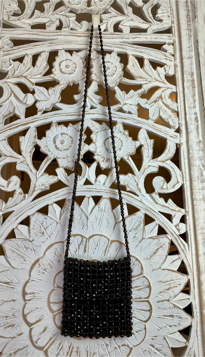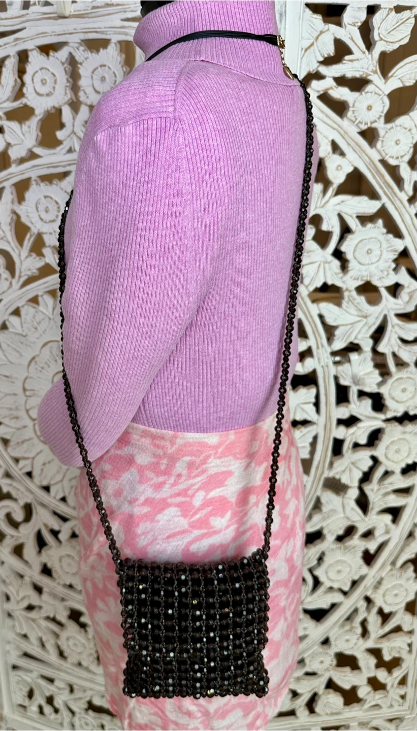 🧡 EXPRESS Brown Acrylic Beaded Small Crossbody Bag Boho Chic