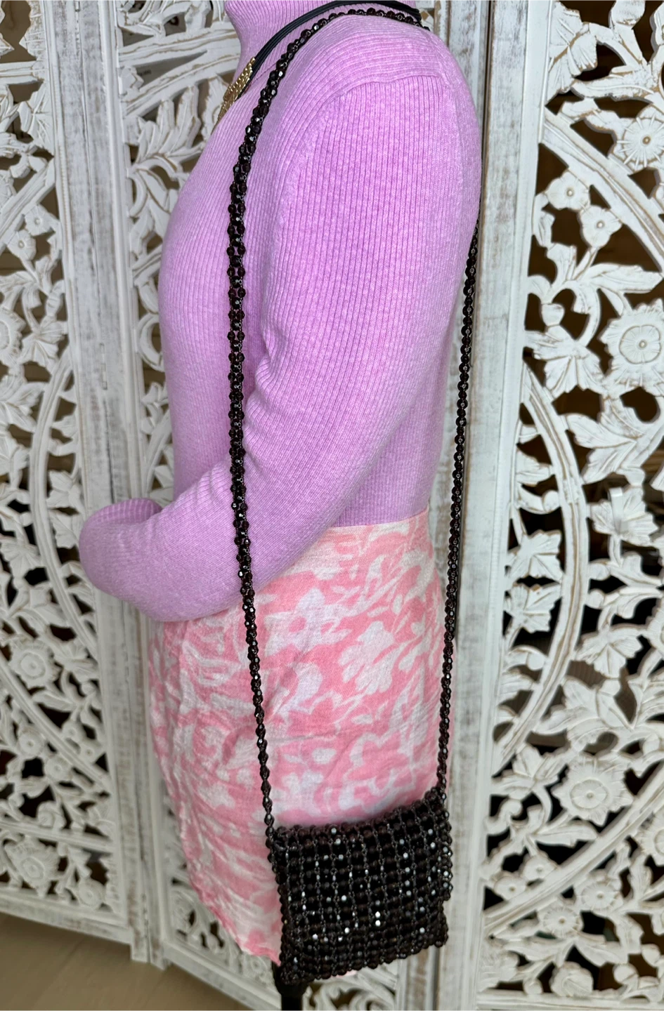Note: As a vintage piece, it doesn’t fully fit a modern smartphone — I carry mine partially zipped with the flap closed. Still, it’s the perfect little boho accessory for your essentials: cardholder, cash, keys, or lipstick.