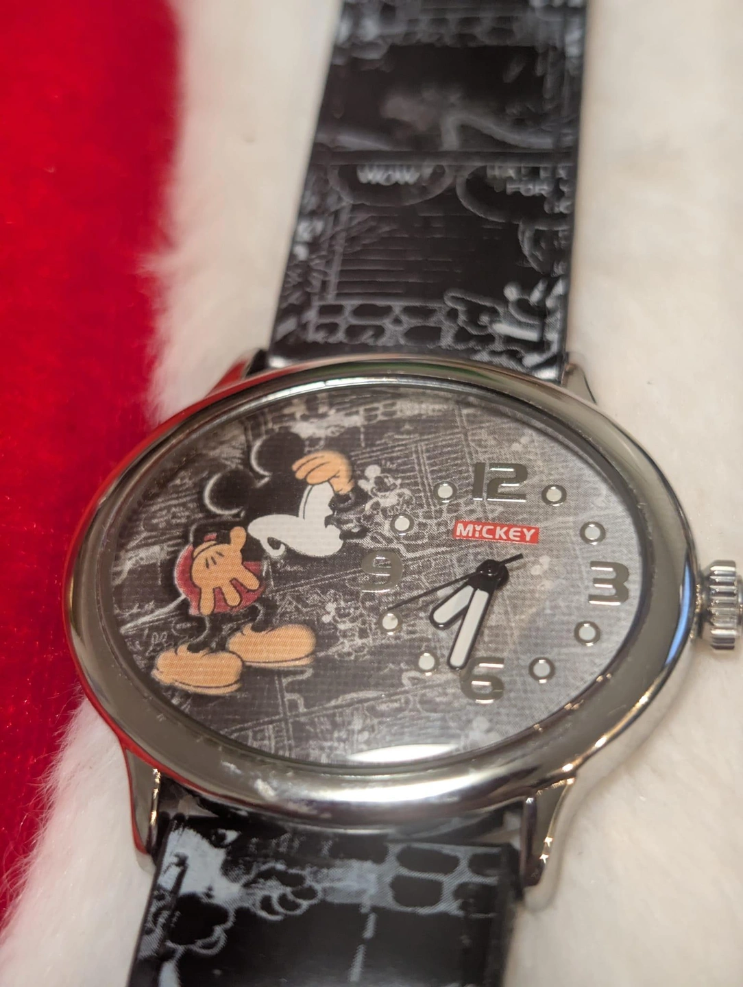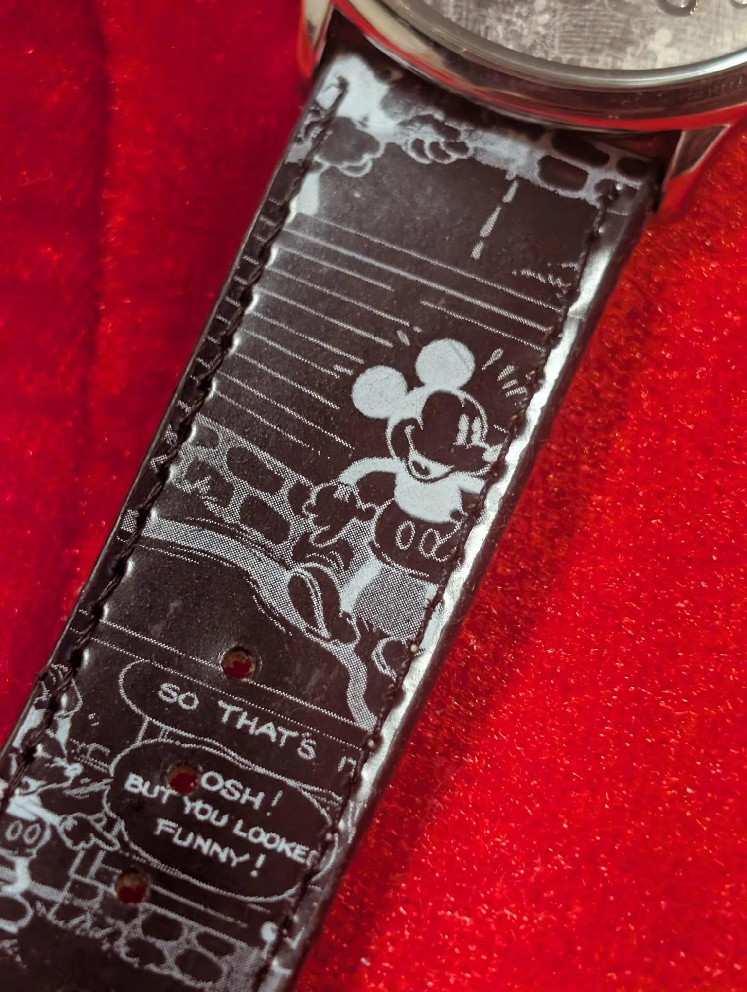Very clean Mickey Mouse watch with a unique comic strip band.