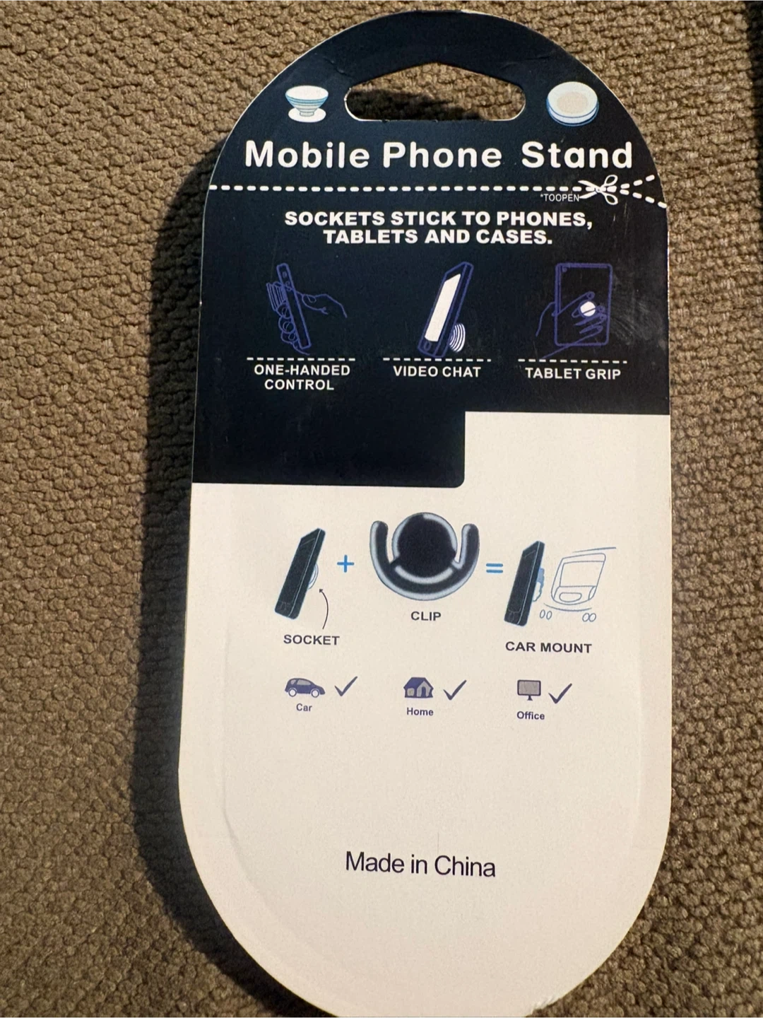 a brand new mobile phone stand! It comes with a socket, clip, and car mount. This stand is designed for one-handed control, video chats, and tablet grip. Perfect for use in the car, at home, or in the office