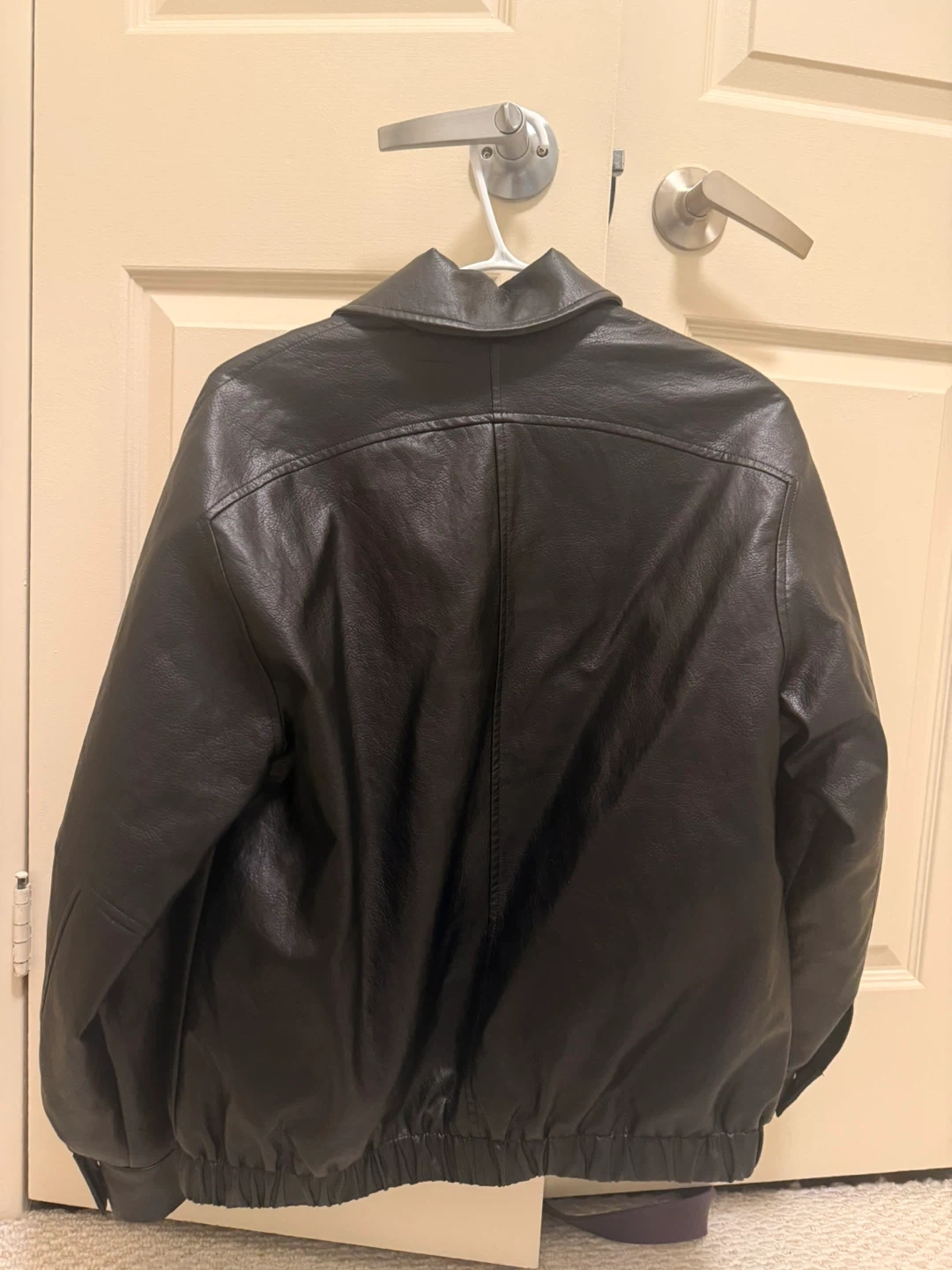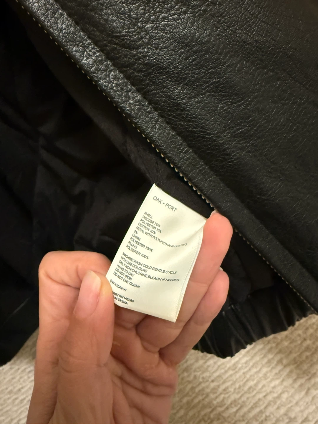 Selling a gently used Oak + Fort black faux leather jacket in size XS. It's in great condition and perfect for layering!