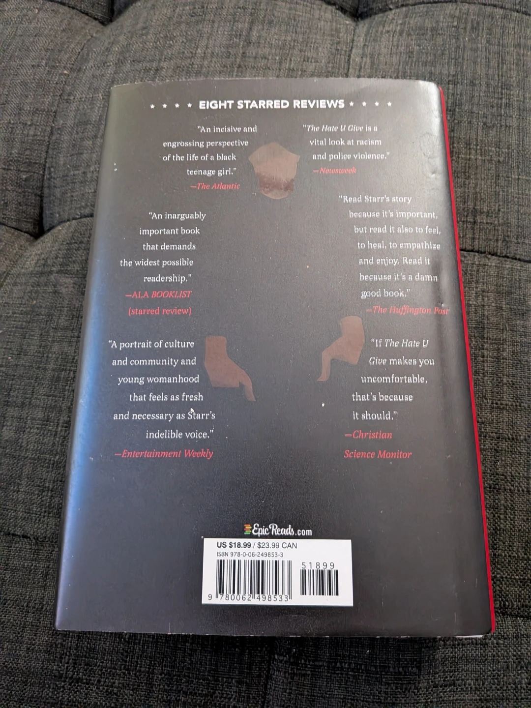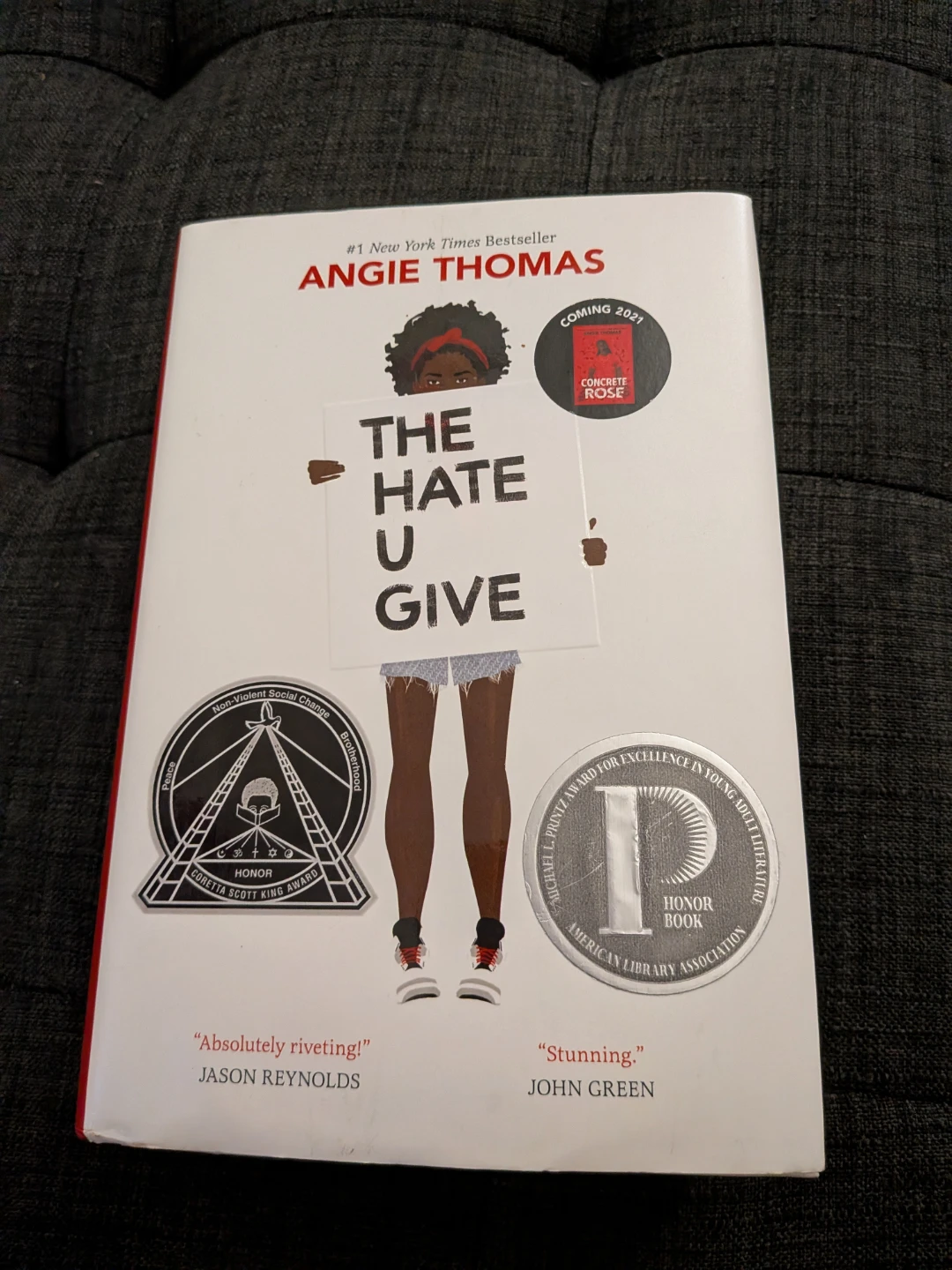 Selling a copy of "The Hate U Give" by Angie Thomas! This book is a #1 New York Times Bestseller and is part of the Young Adult Literature category. It has received eight starred reviews and is a powerful and moving story about racism and police violence