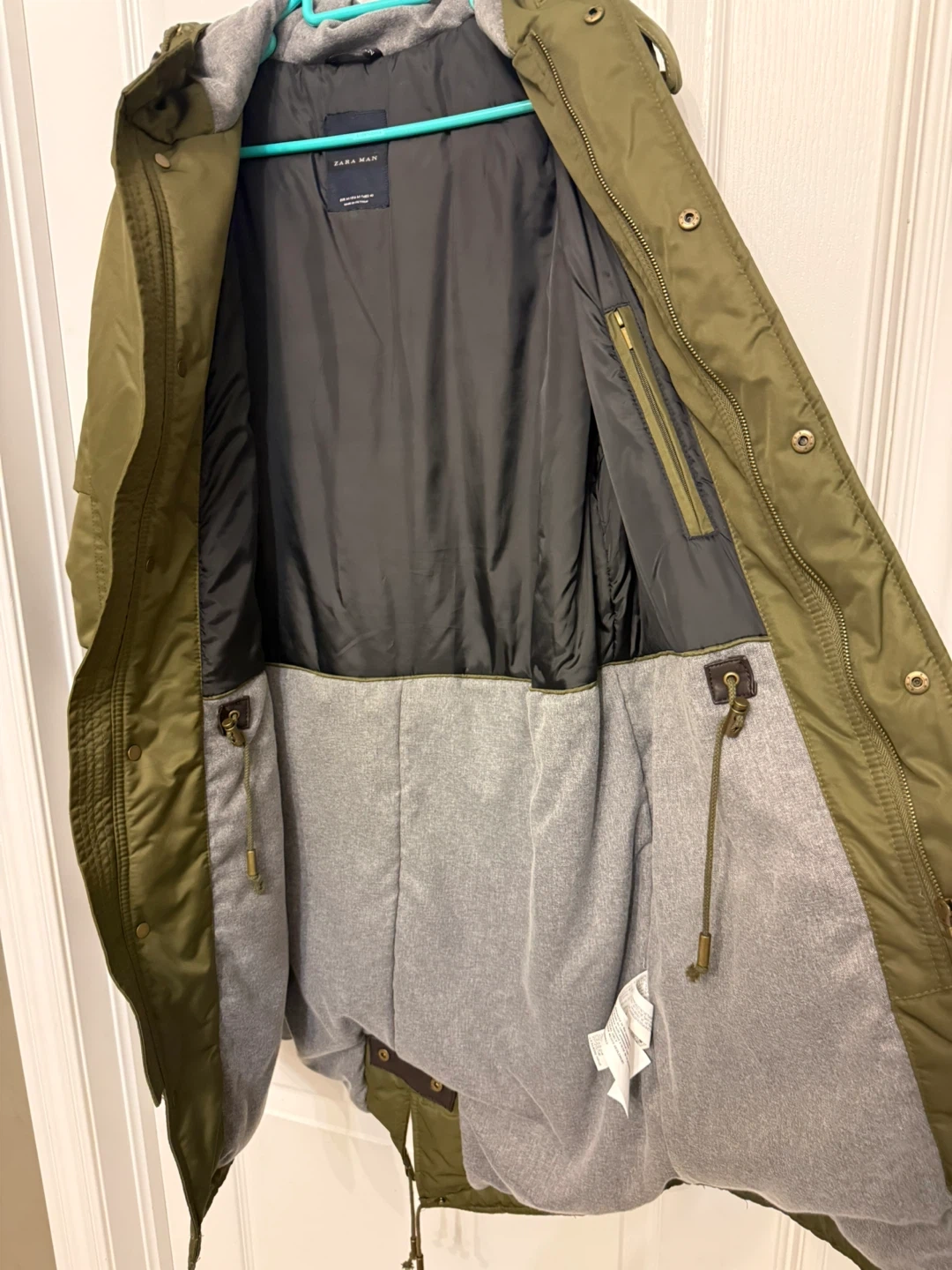 Selling a Zara Man parka in olive green. It's a size medium and in great condition. Perfect for the cooler weather!