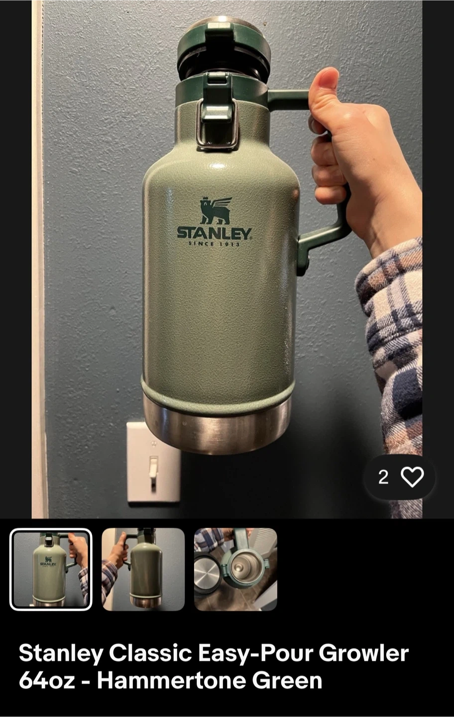 Selling a brand new never used Stanley Classic Easy-Pour Growler in hammered green. This 64oz growler is perfect for keeping drinks cold and fresh. Originally bought for $74 CA asking $50