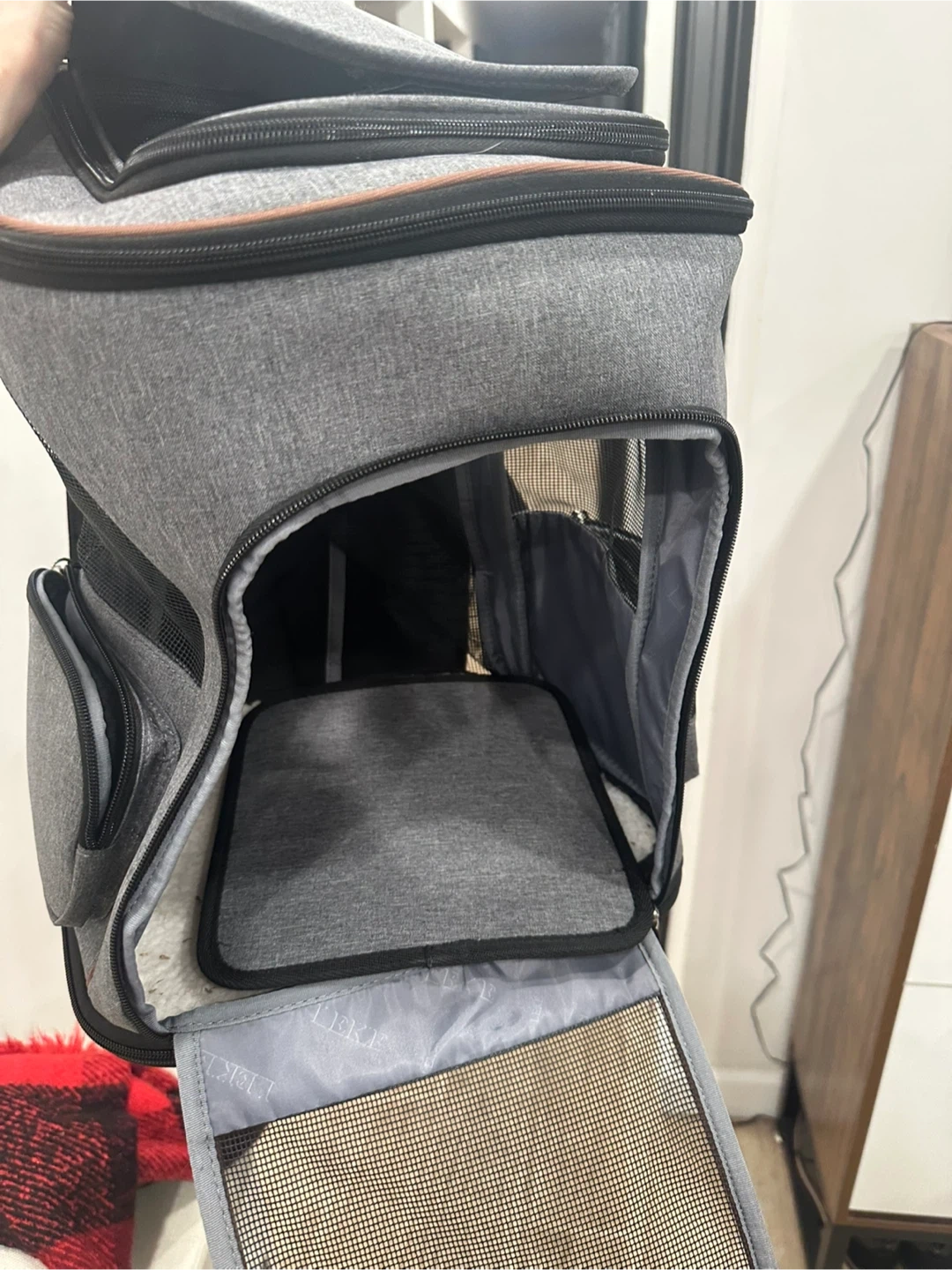 Selling a Lekesky pet carrier backpack in gray! It looks to be in great condition and ready for your furry friend's next adventure. It's designed to make life easier for both you and your pet.