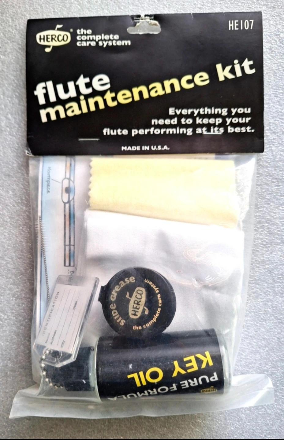 Keep your flute in top condition with this HERCO flute maintenance kit! It includes everything you need to keep your flute performing at its best, such as key oil, slide grease, and cleaning cloths