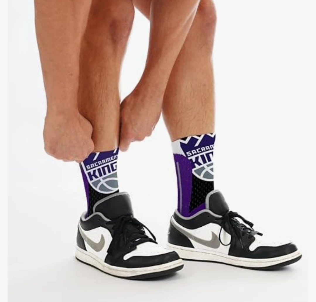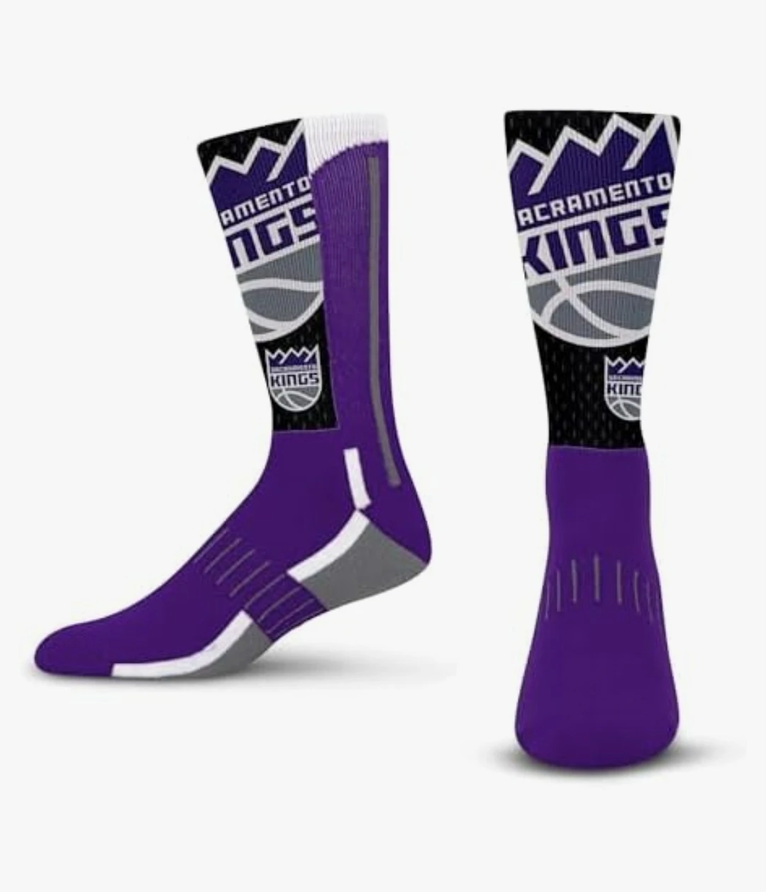 Show off Kings pride on game day (or any day). These officially licensed Sacramento Kings crew socks by For Bare Feet deliver bold team graphics, breathable comfort, and durable construction — perfect for young fans and collectors alike.