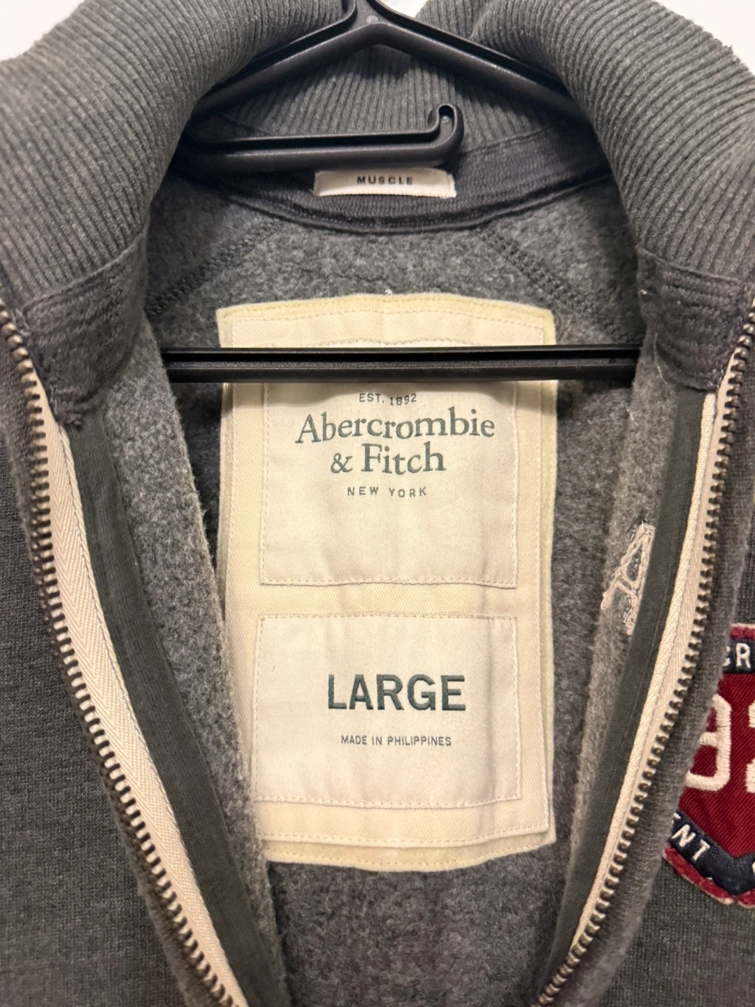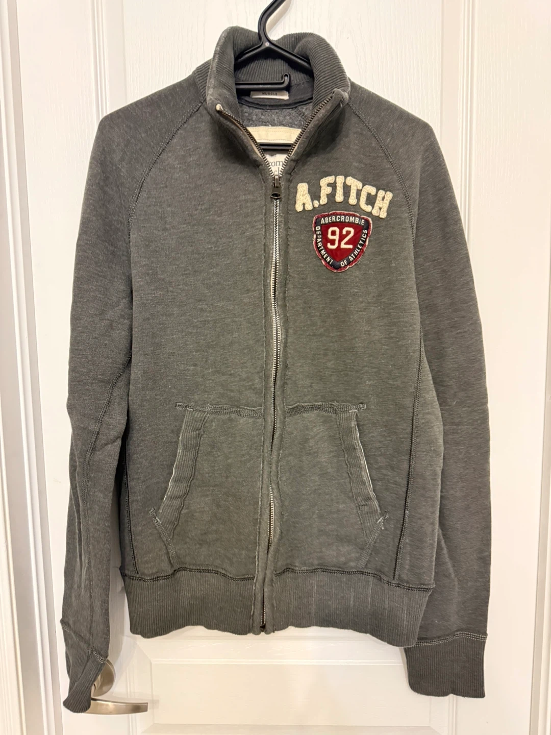 Here's an Abercrombie & Fitch full zip jacket in size large! It's a stylish and comfortable piece, perfect for layering. The jacket features a full zip closure and a classic design, making it a versatile addition to your wardrobe