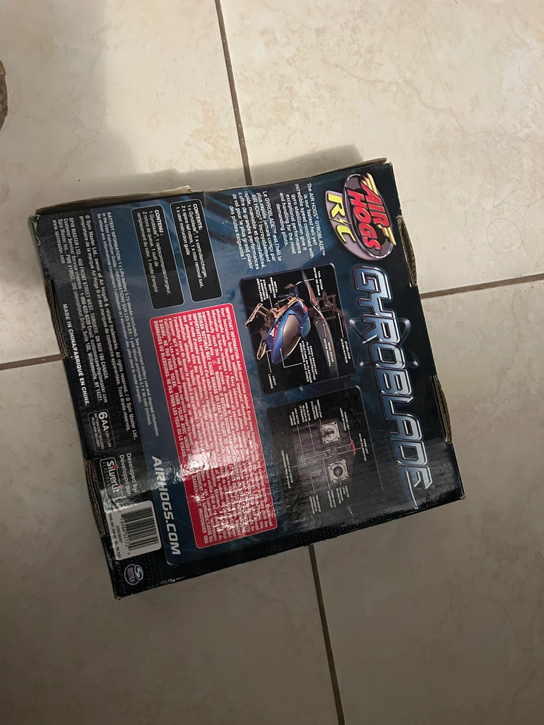 Selling an Air Hogs Gyroblade RC helicopter! It has a metal reinforced body structure and is gyro-stabilized. Includes the Gyroblade, controller/charger, tail rotors, and an instruction guide. Ready for some high-performance RC fun