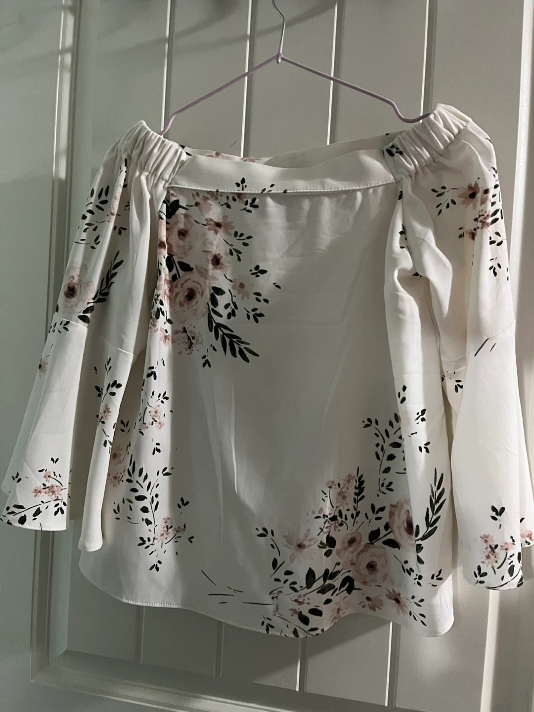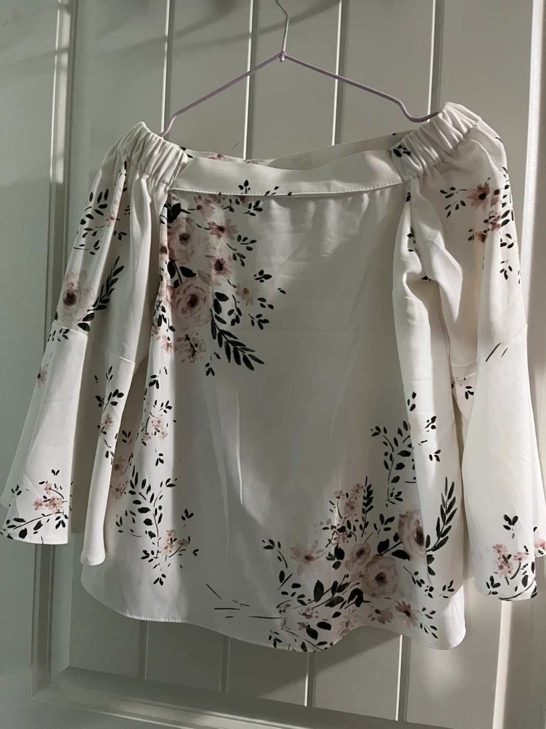 Selling a lovely floral print blouse in white from Dynamite. It's in great condition and features a beautiful floral design. The sleeves are so pretty and the material is both comfortable and professional.