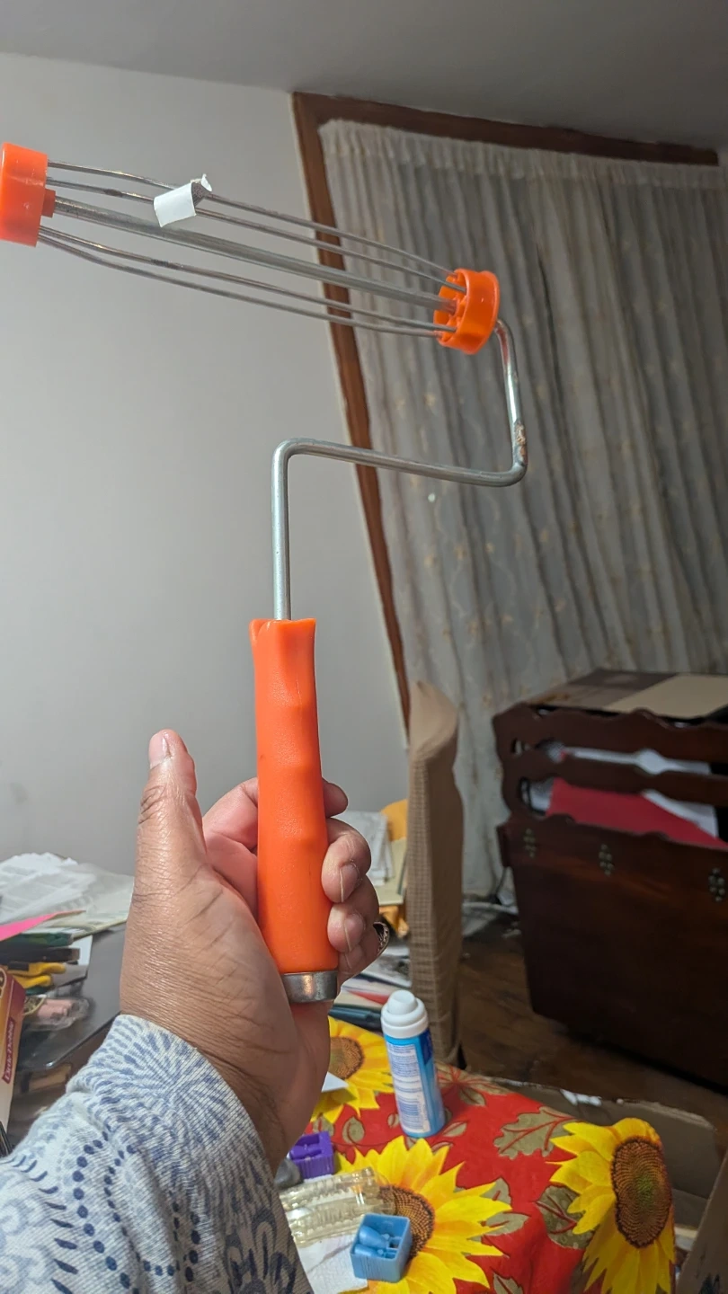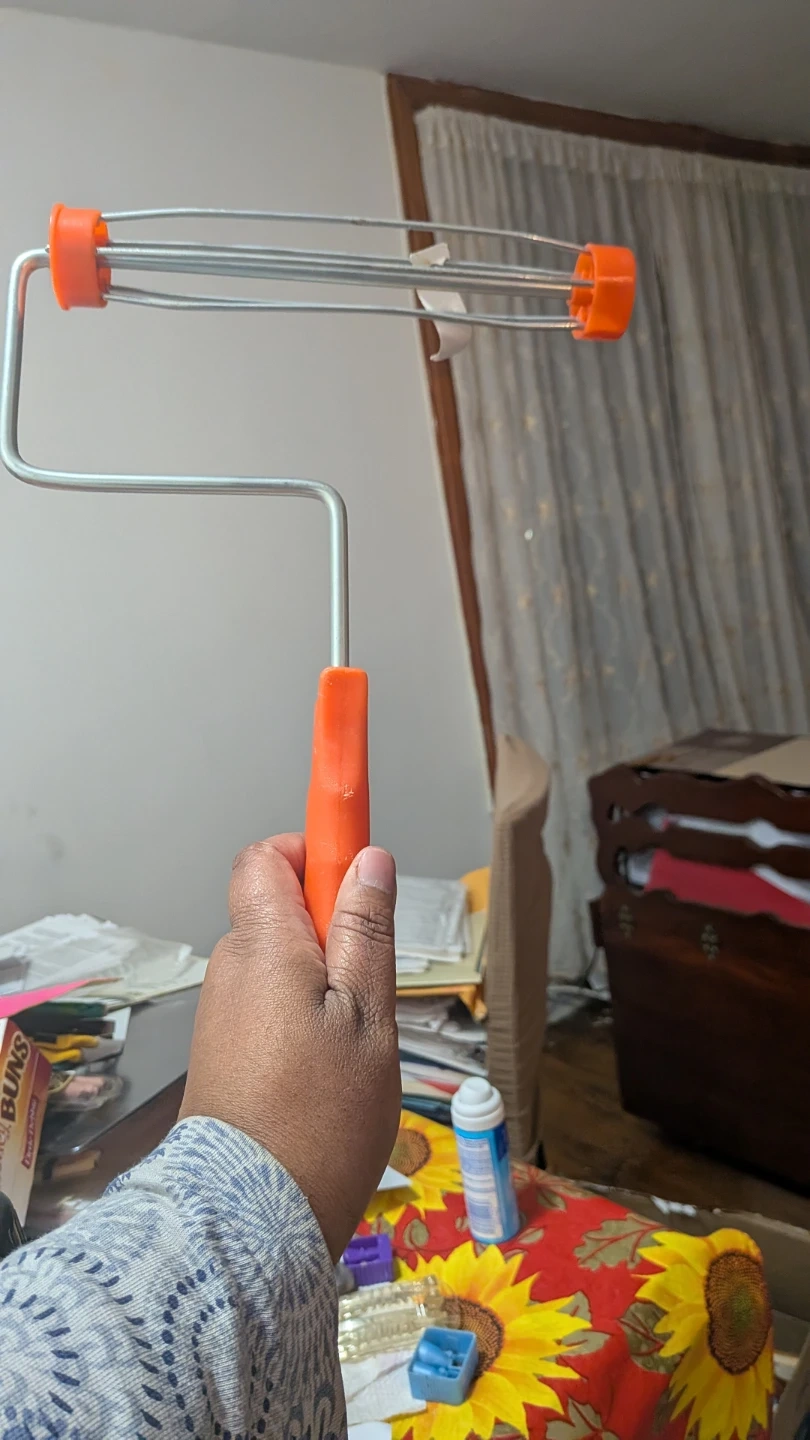 Selling a paint roller with an orange handle. It's in good condition and ready for your next painting project.