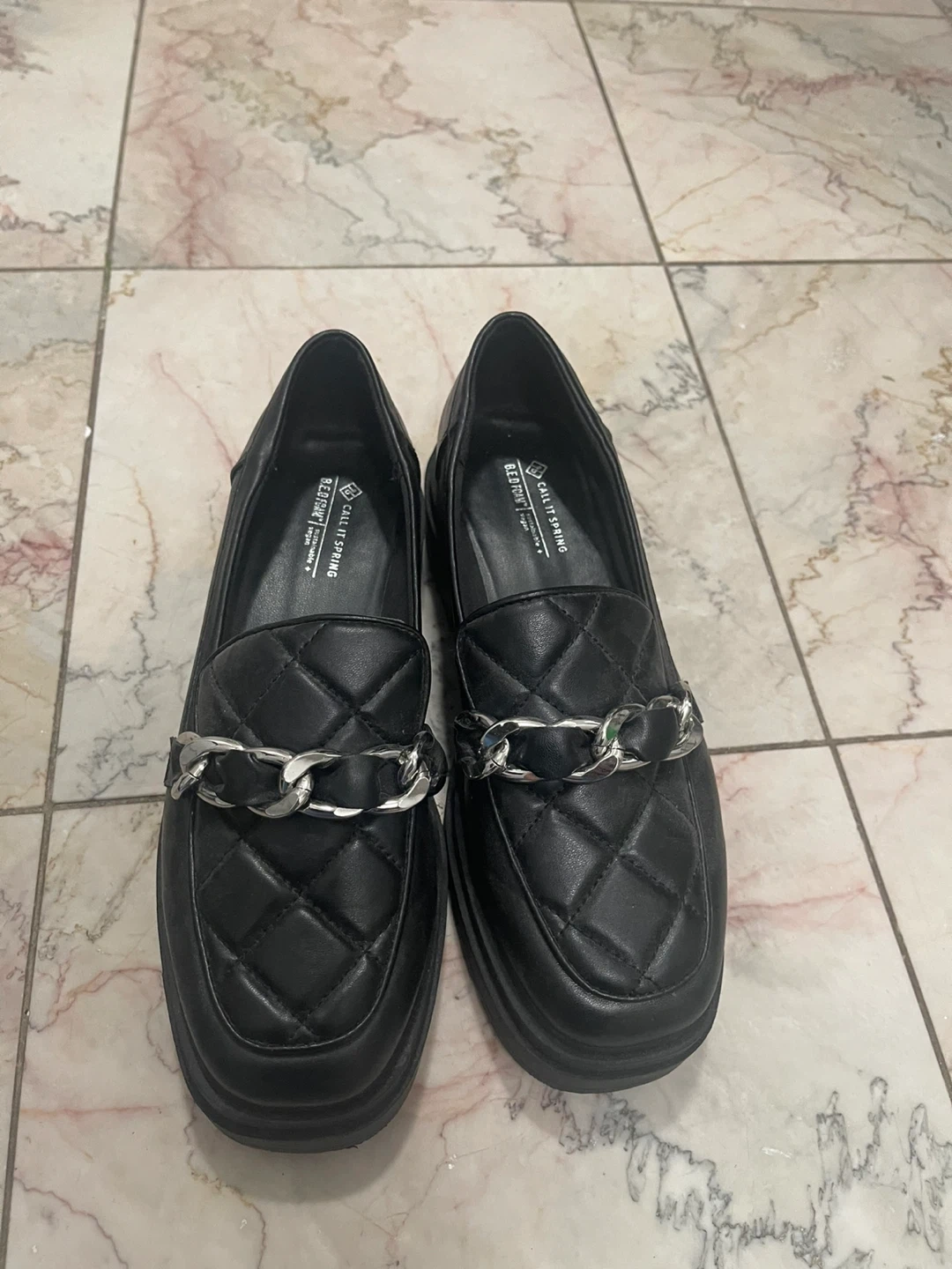 Selling a pair of Call It Spring loafers in black. They're a US size 8 and made with sustainable + vegan materials. These stylish loafers are perfect for adding a touch of elegance to any outfit!