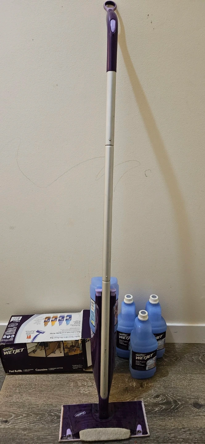 Selling a Swiffer WetJet mop set! Includes the mop, refill pads, and 3x (full) cleaner solution. Everything you need to keep your floors sparkling clean. PU only at Coppersmith/Ironwood Plaza.