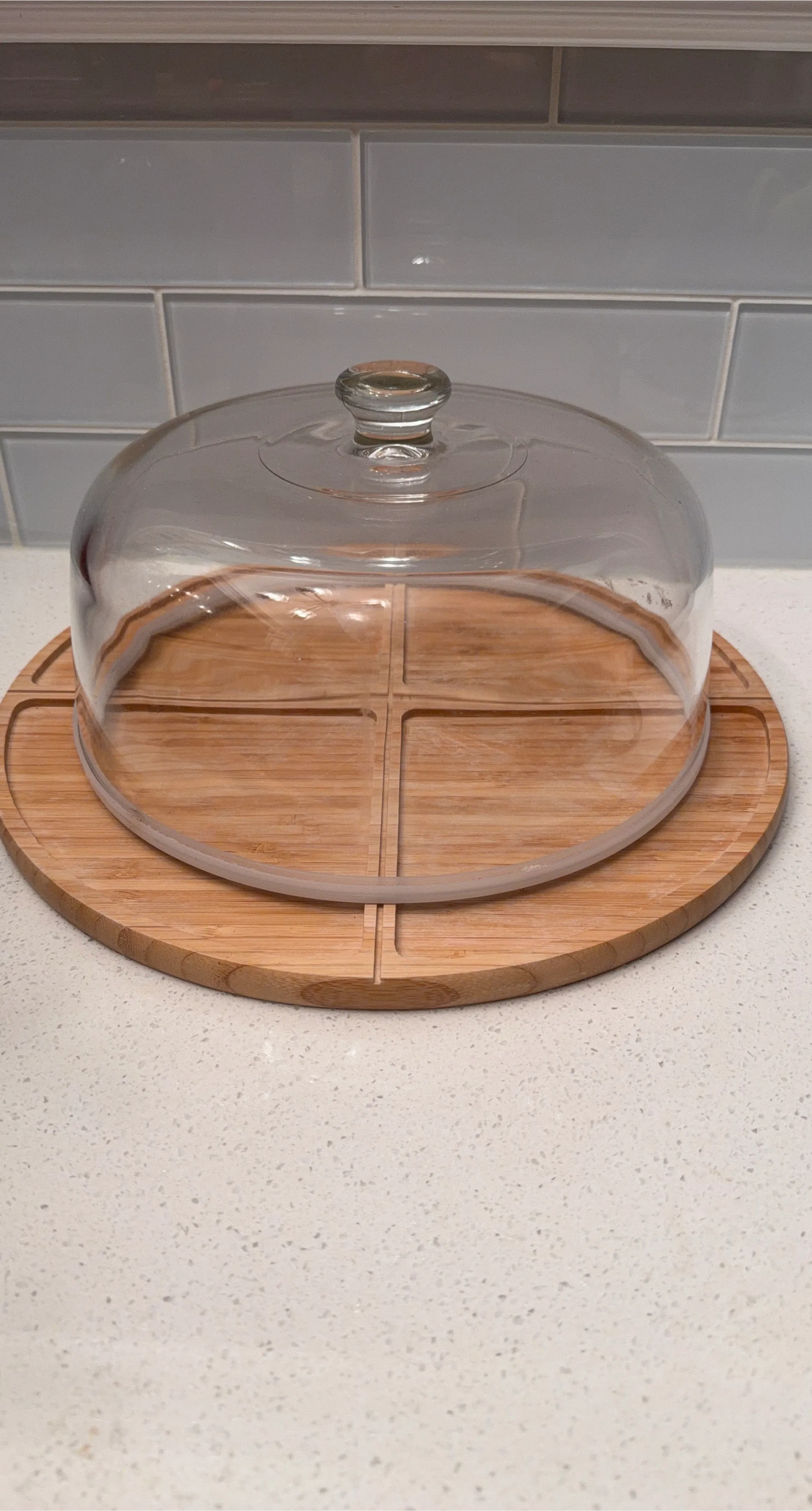 Selling a wooden cheese board with a glass dome. Perfect for serving cheese and keeping it fresh! It's in great condition and ready for your next gathering
