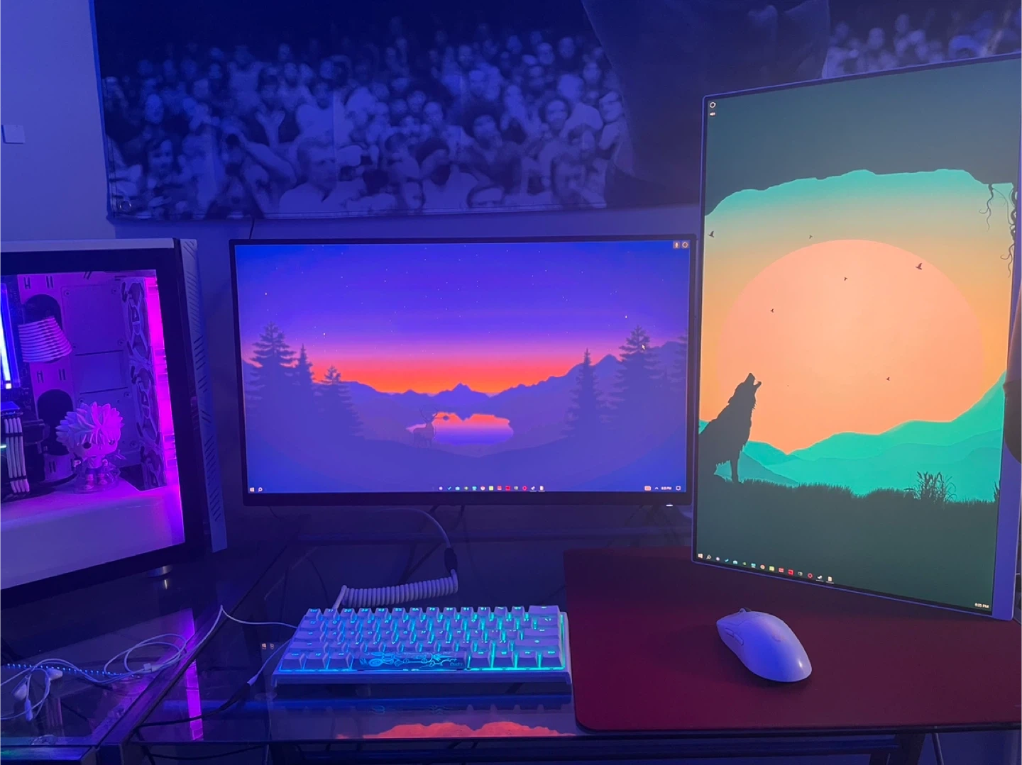 The side monitor is 120hz white Asus monitor. Bought this year and it's connected with a dual setup arm, but I also have the stock stand if interested $200