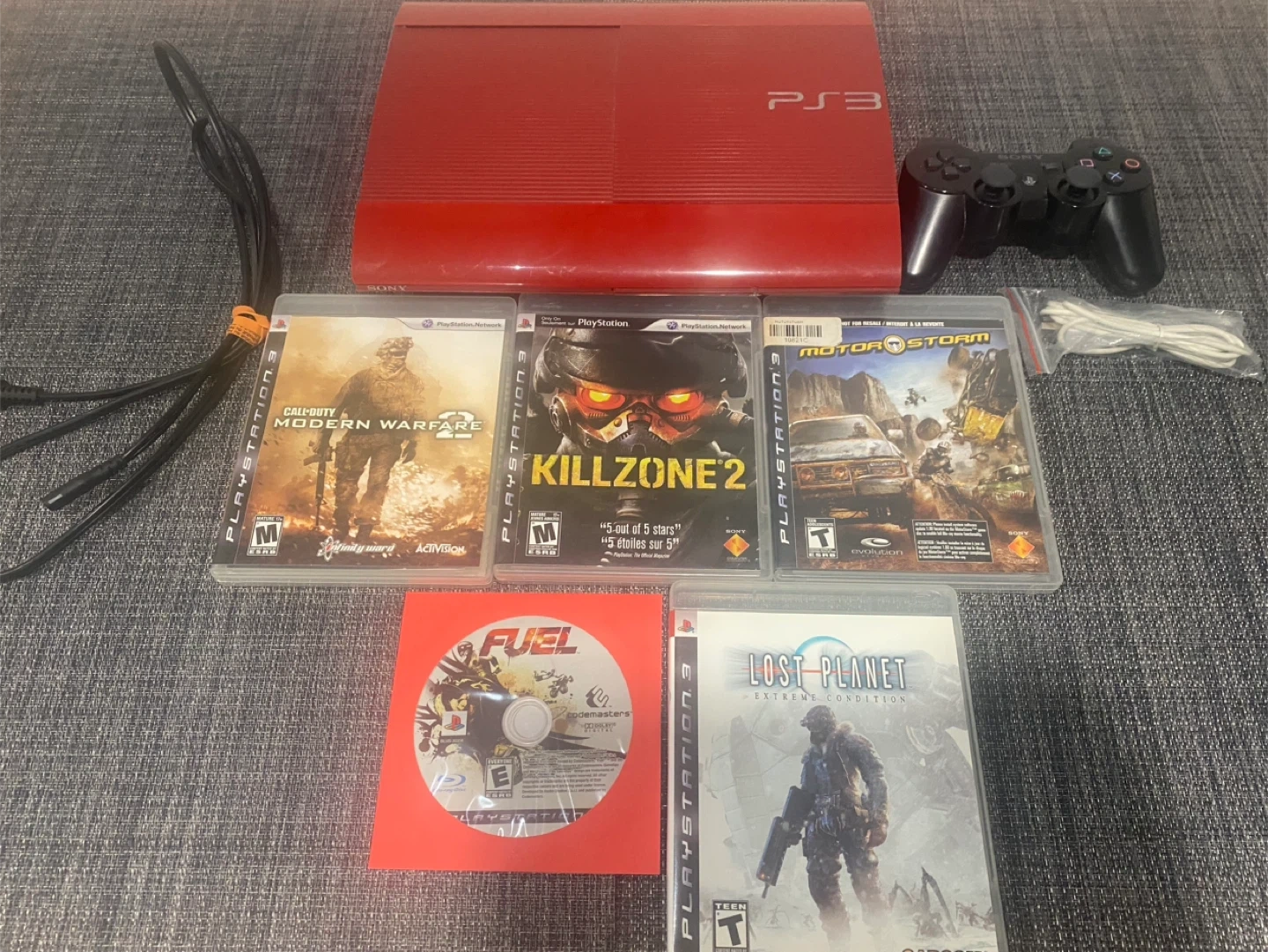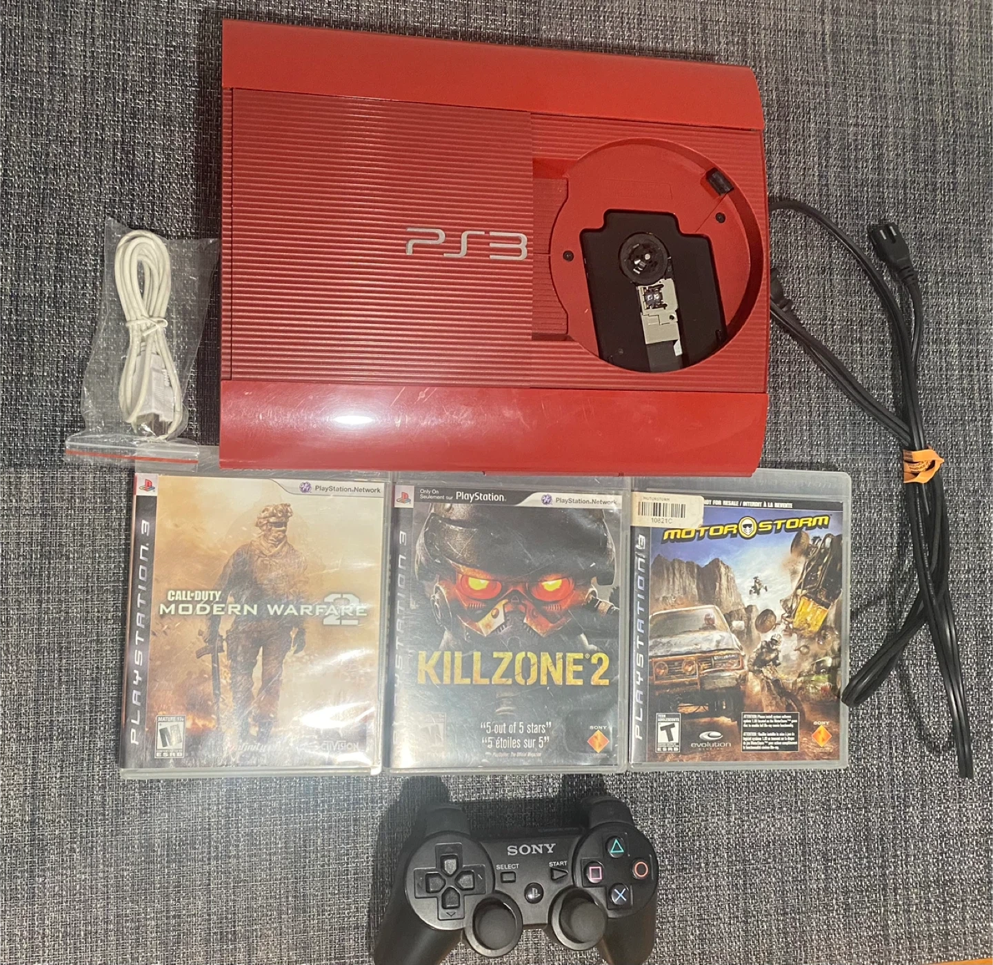Selling a God of War edition red Sony PlayStation 3 (PS3) console. Includes a controller, all the necessary cables and three games: Call of Duty Modern Warfare 2, Killzone 2, and MotorStorm. It’s in mint condition, everything has been tested and working flawlessly. Check out my other listings for more video games and collectibles.