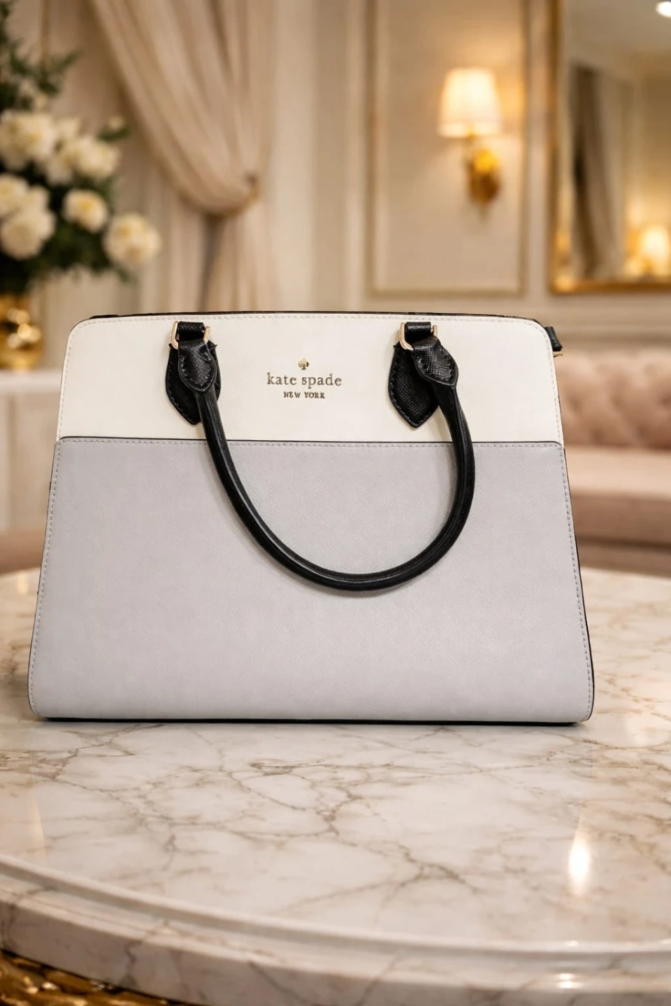 Elevate your everyday style with this stunning Kate Spade New York handbag, designed for effortless sophistication. Featuring a chic two-tone palette with smooth textured leather and polished hardware, this bag is the perfect blend of modern elegance and practicality.