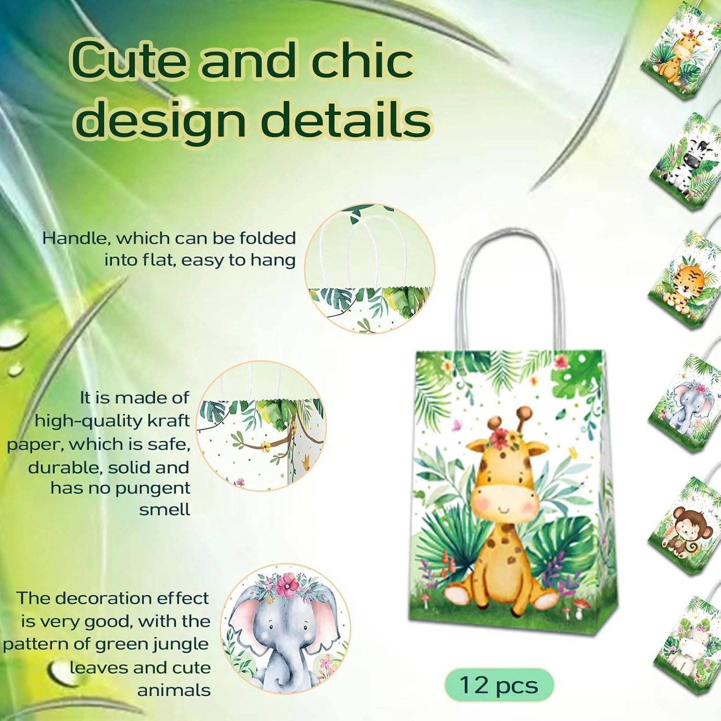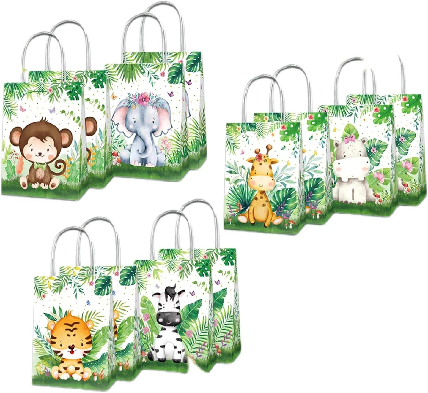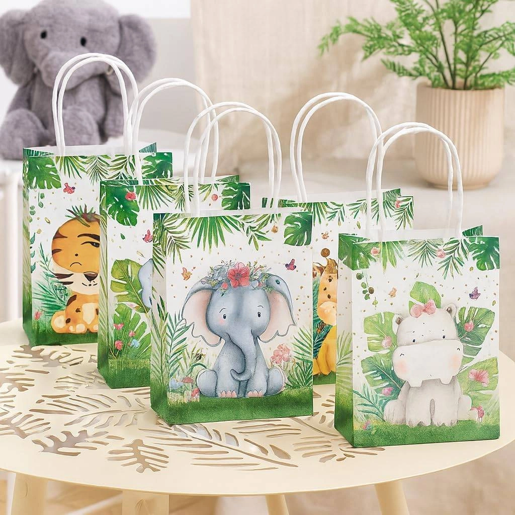 Get ready to party with these adorable safari jungle themed favour bags! This set includes 12 paper bags, perfect for filling with treats and goodies for your little one's birthday celebration. Each bag features a cute animal design and is made of high-quality kraft paper. Originally bought for $19.70.