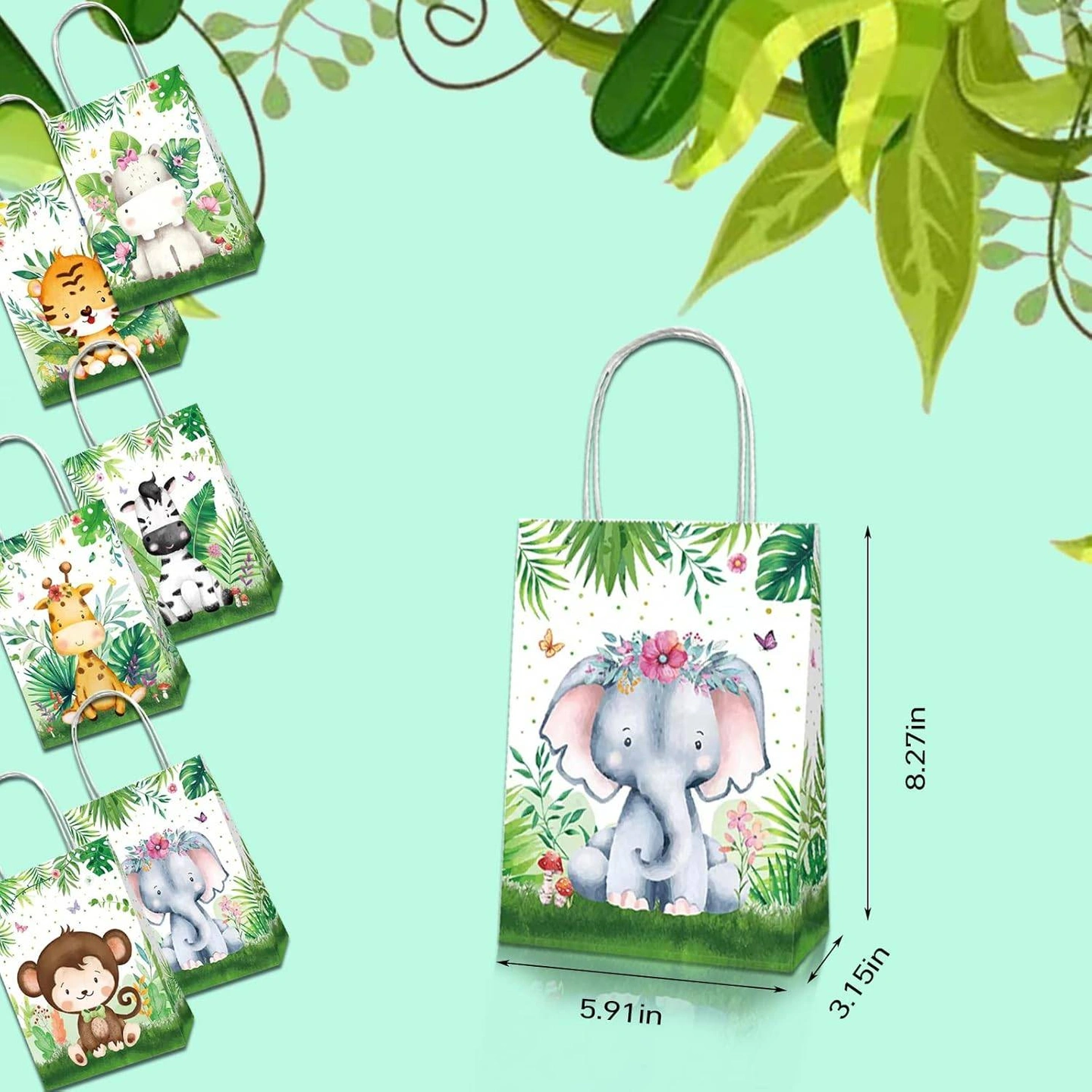 Safari Jungle Theme Party Favour Bags - 12 Pieces