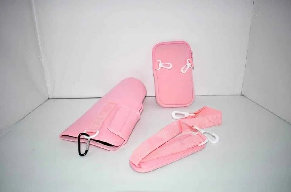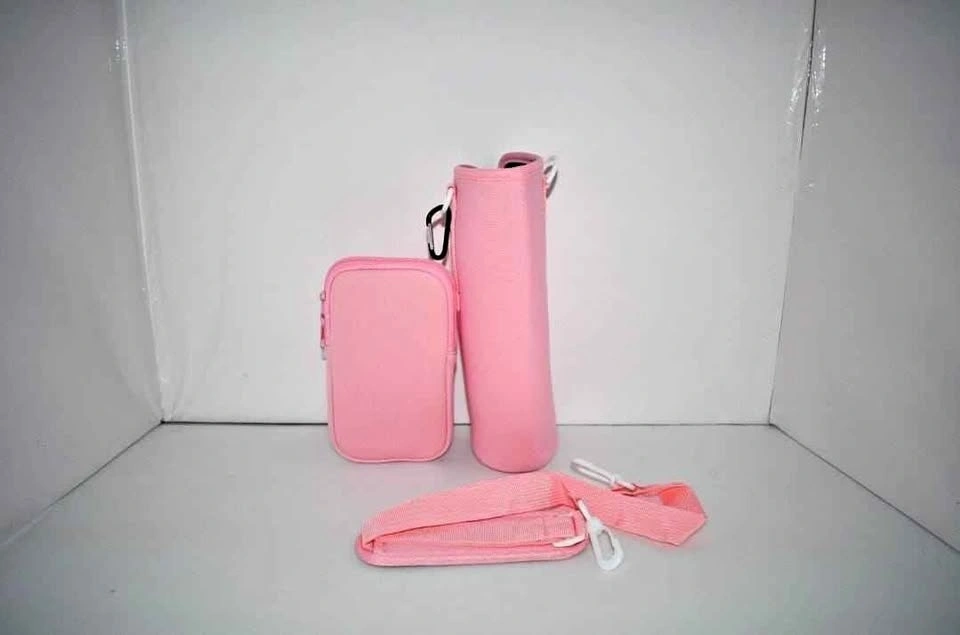 Linkidea Water Bottle Carrier Bag with Stable Strap and Pouch, in Pink Color