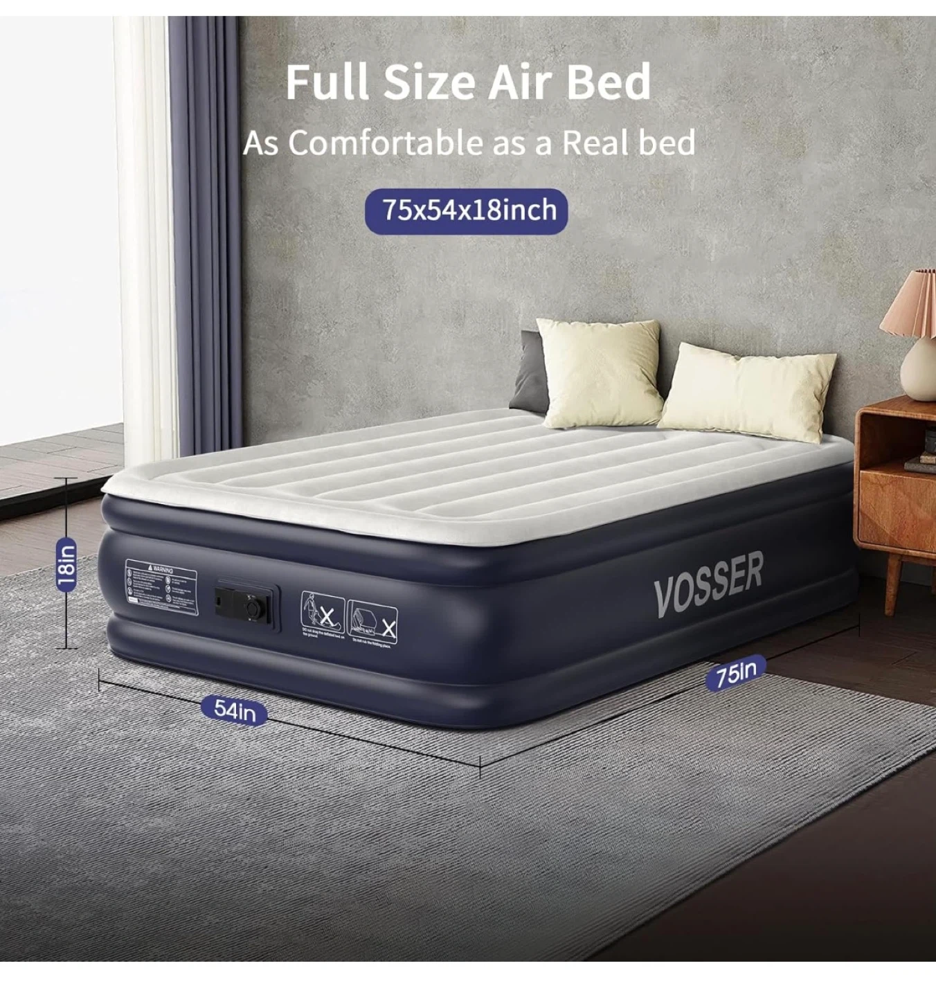 Looking to sell a full-size air bed from VOSSER! It measures 75x54x18 inches.